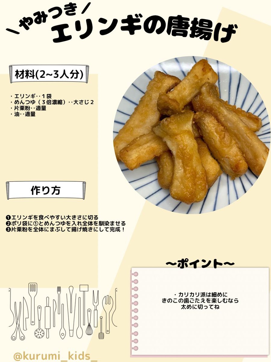 エリンギのくせに唐揚げ超えてきた。ぷりっとかむたびうまみ広がって3歳の息子も2歳の娘も「もっと食べたい!」連呼。きのこ嫌いまで爆食とか聞いてない。わたしは味見で1つだけ。パパはまさかのゼロ。次こそ3倍作ろうと心に誓ったレシピはリプに置いとくね pic.x.com/cC36IlMbfA