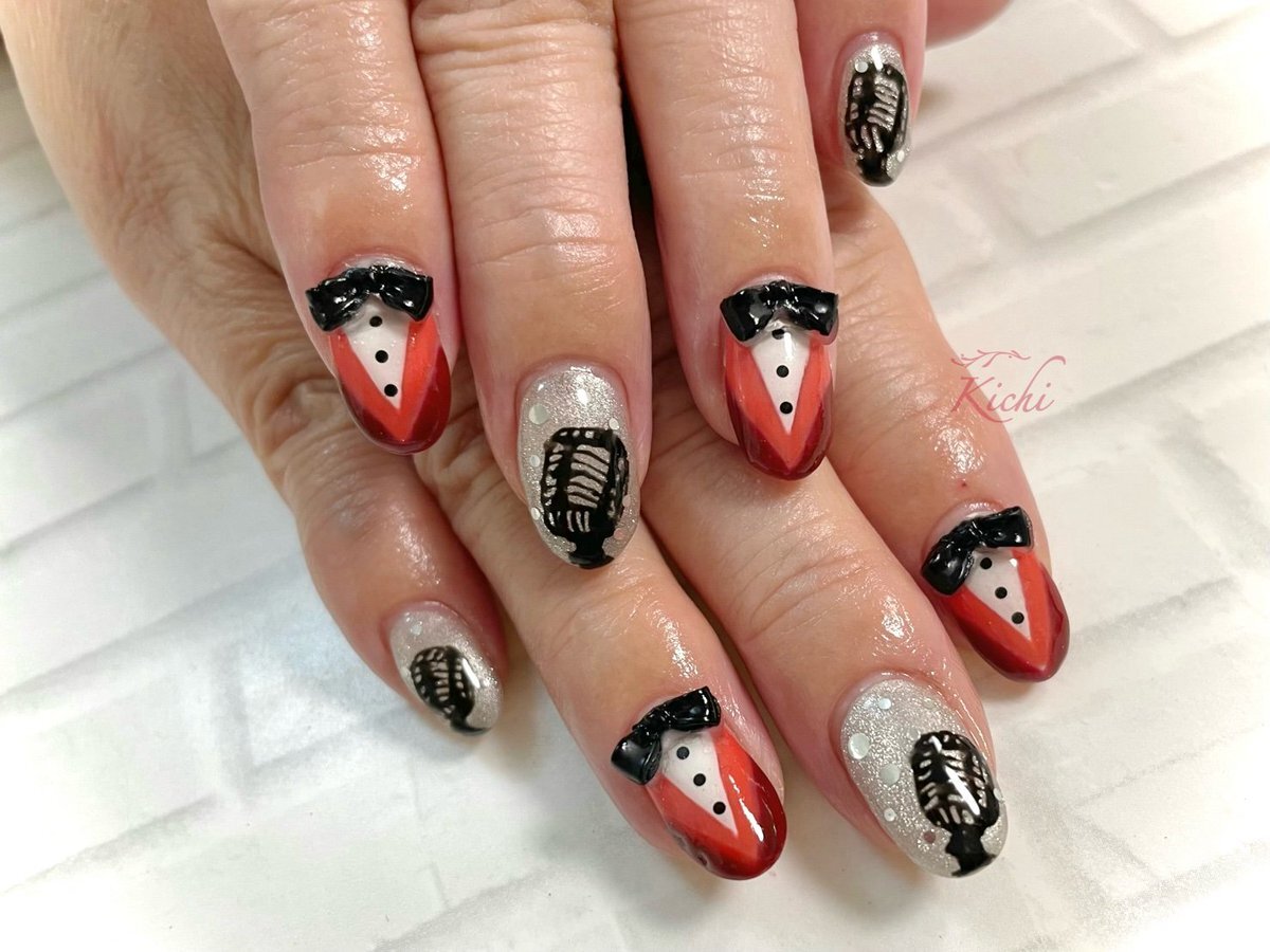 4週 経ったのでネイルをチェンジ‥って前回の #ジャージー・ボーイズ 仕様を気に入りすぎて、おかわり!! 「赤ジャケ+🎙️」×4人+レコード+🎳とサイン✨ 🎙️の背景だけ赤系からシルバーに変更🪩 大大大好きな #ジャージーボーイズ ‥残りのmyチケットが減ってきてせつないけど‥JBの世界を満喫しきる!!🥲 x.com/pomechin/statu…