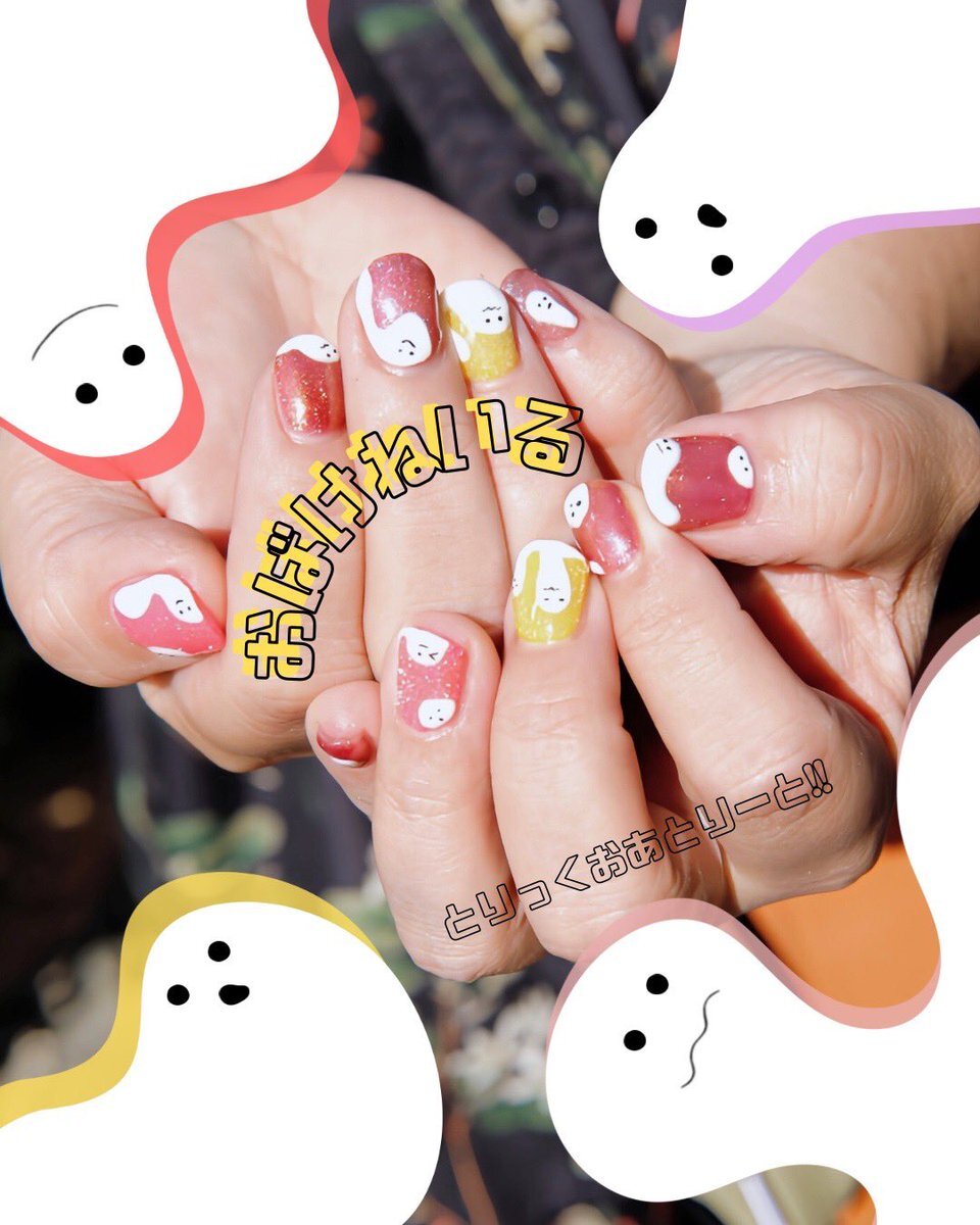 ハロウィン🎃👻ネイル💅 そろそろハロウィンの季節🎃 ネイルもハロウィンに😊 ネイリストの方がおばけ👻やかぼちゃも🎃丁寧に描いてくれました! #ハロウィンネイル #ネイル #ハロウィン pic.x.com/oGaA7jXmW4