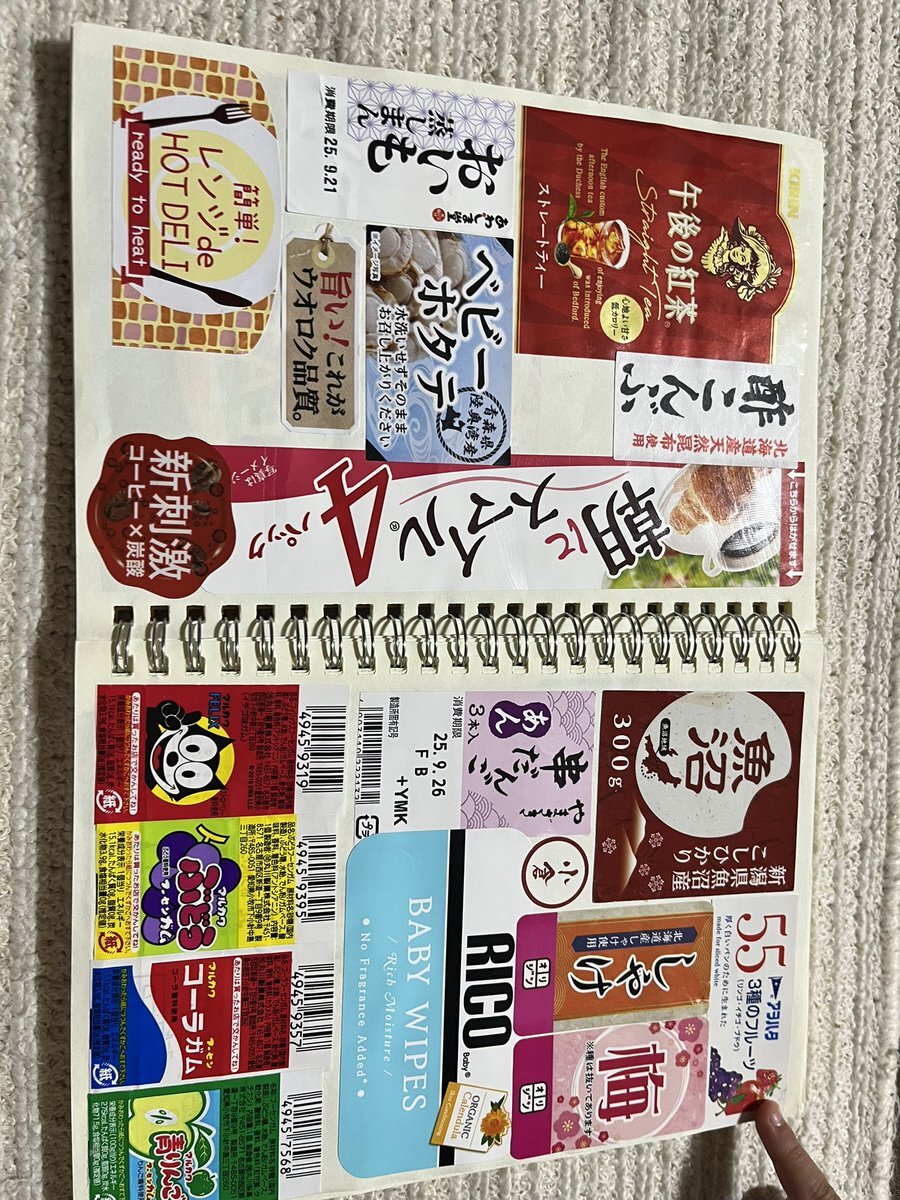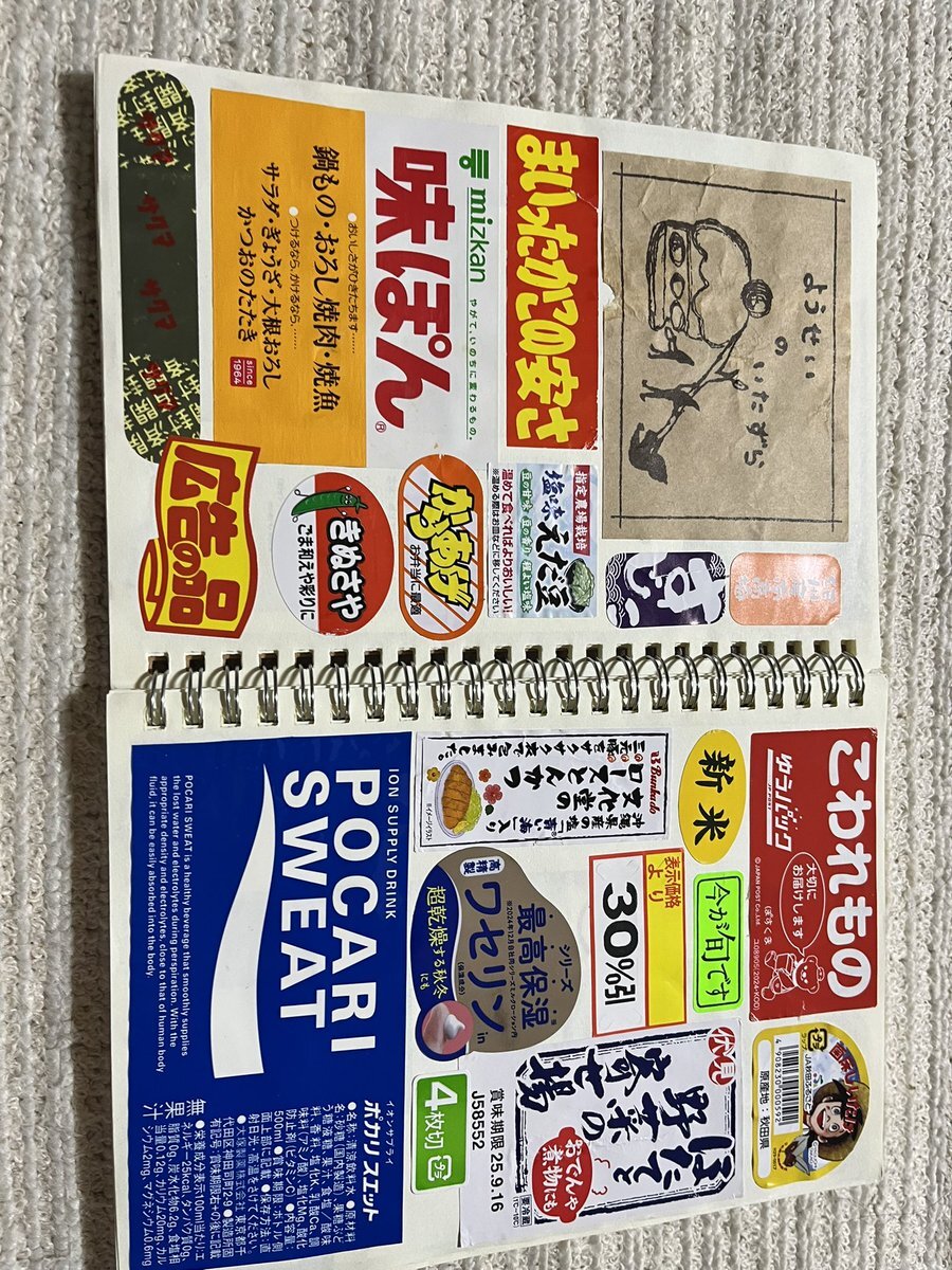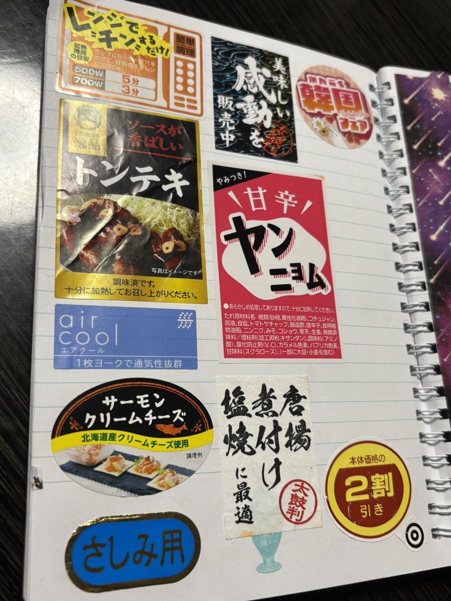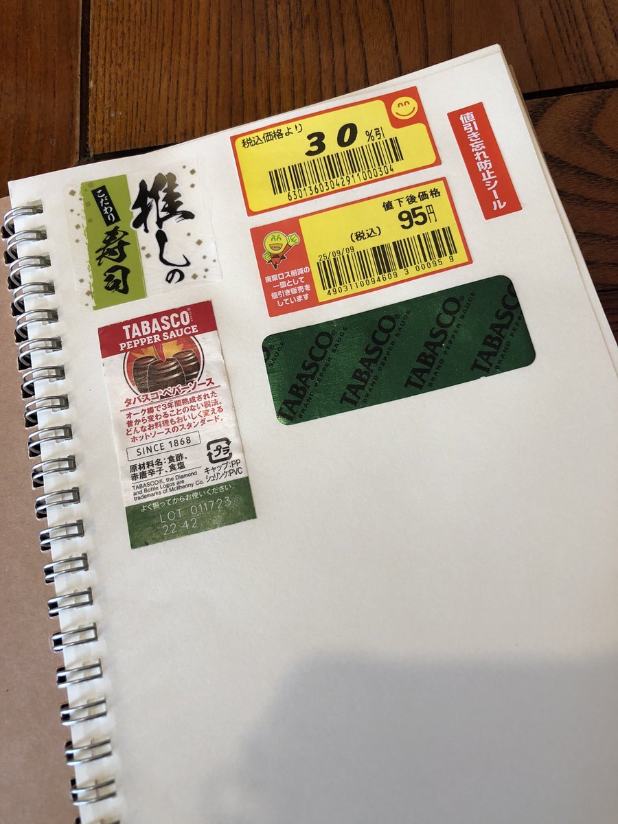 主婦のシール帳作り楽しい! お金かからない遊びでいいね👍 以外とシールなくてまだ全然集まってないけどw タバスコのは粘着力なくなってたからのりで貼り付け。 検索してるとみんなシール目当てで商品買ってるけど、私は誘惑に負けない!w ダイソーのこのノートでやっていきます☺︎ pic.x.com/iZ9ajeqZzq
