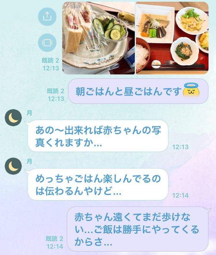 入院後、陣痛に耐えながら孤独に過ごしてるときに会いたくてたまらなかった娘が夫のスマホ乗っ取ってメッセージ送ってくれてわたしが興奮してる履歴があった #出産日のトーク履歴 pic.x.com/0lg2G4GOuj
