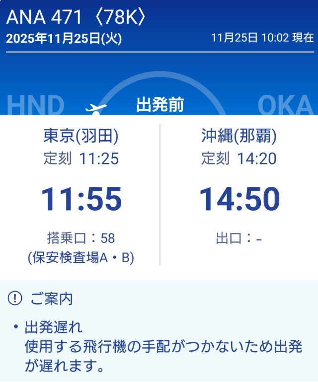 今年22回目の沖縄に行ってきたんだよぉ~!京急線遅延にうんざりしていたら、先週(金)のフライトに続き、NH471まで遅延とは・・・・・3連休頑張ってお仕事したのに散々な連休明けスタートです凹凹凹 #沖縄の旅 pic.x.com/Wo0dEuDLqF