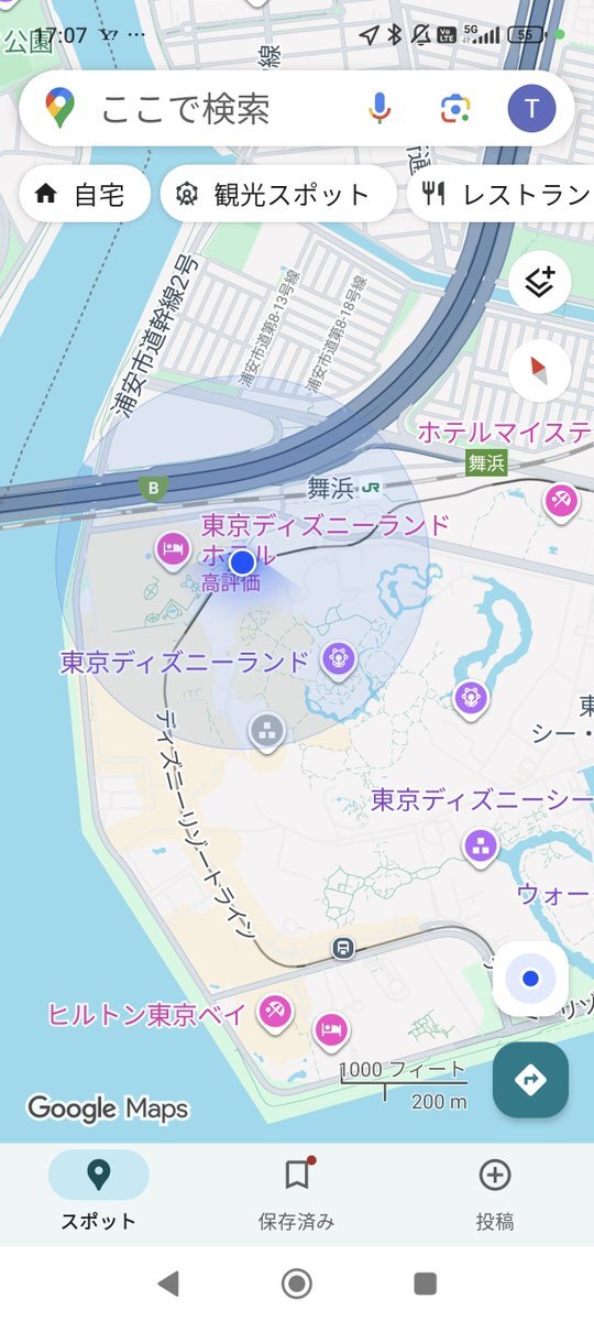 おかしい、googleMap確認したらなぜか今は東西線の大手町なのになぜかディズニーにいる しかもGPSがここで止まってるとかじゃなくて今日一回もこっちに行ってないぞ pic.x.com/RwhRxnImEW