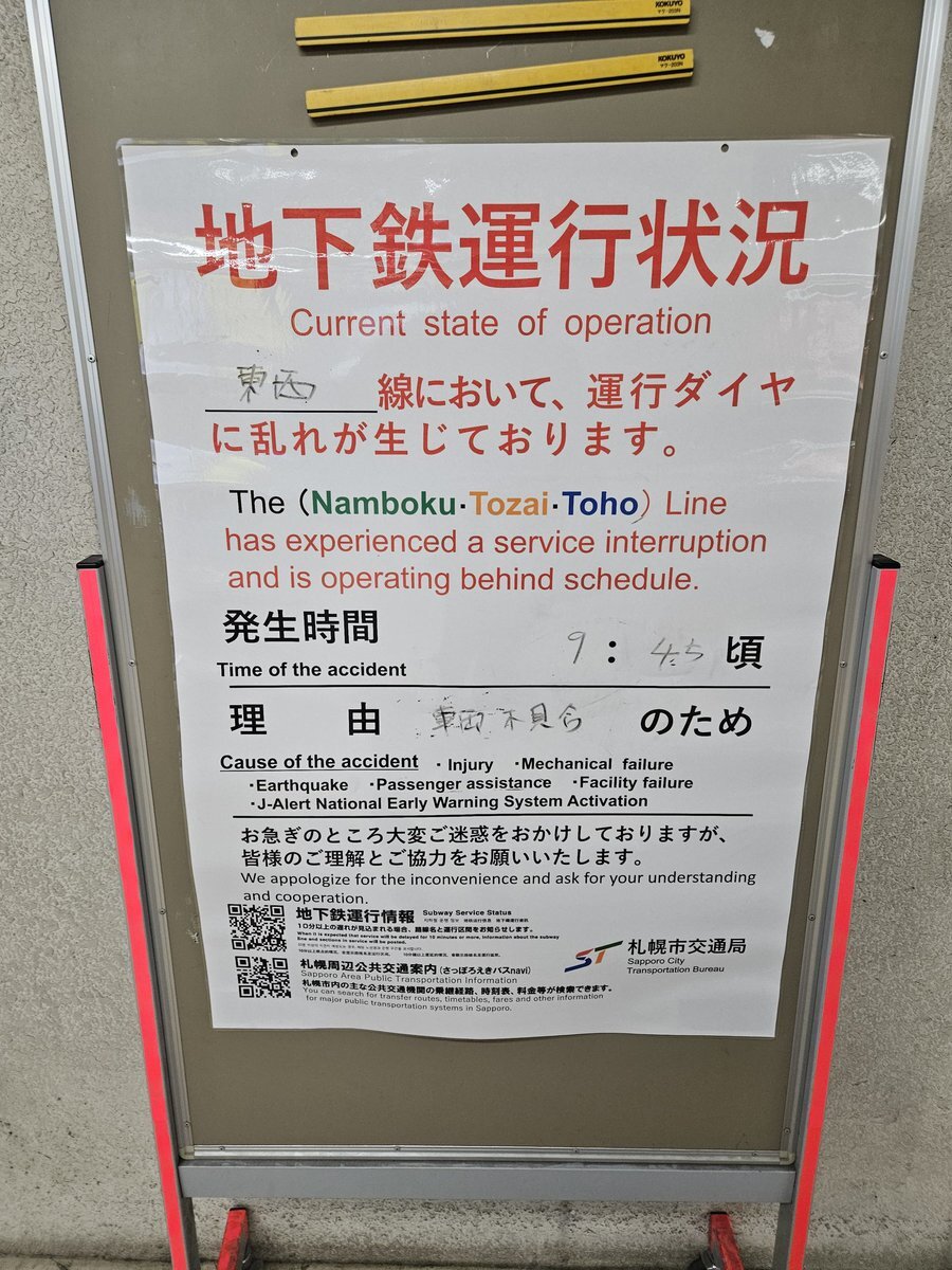本日失業後初の面接日で札幌へ。そうすると面接先が地下鉄東西線駅近で案の定朝から施設故障だとかの嫌がらせ&面接会社前に痛救急車が「同期したいよ〜❗️」と創価学会員救急隊員が興奮中で,コレってカルト系会社面接〜??だからこのキチガ◯🇯🇵人供社会は嫌なんだよな〜 pic.x.com/w9I3b8WWW9