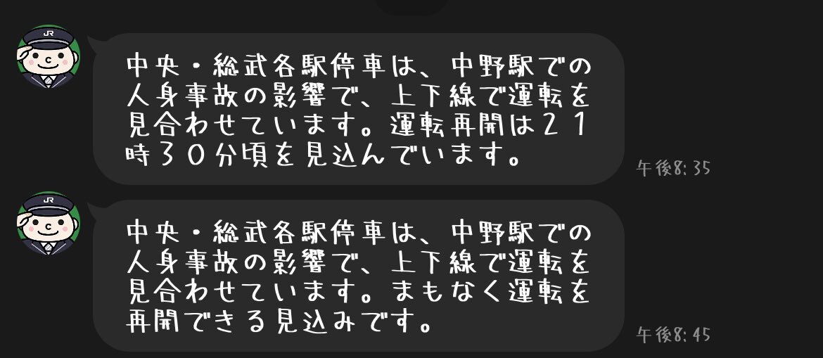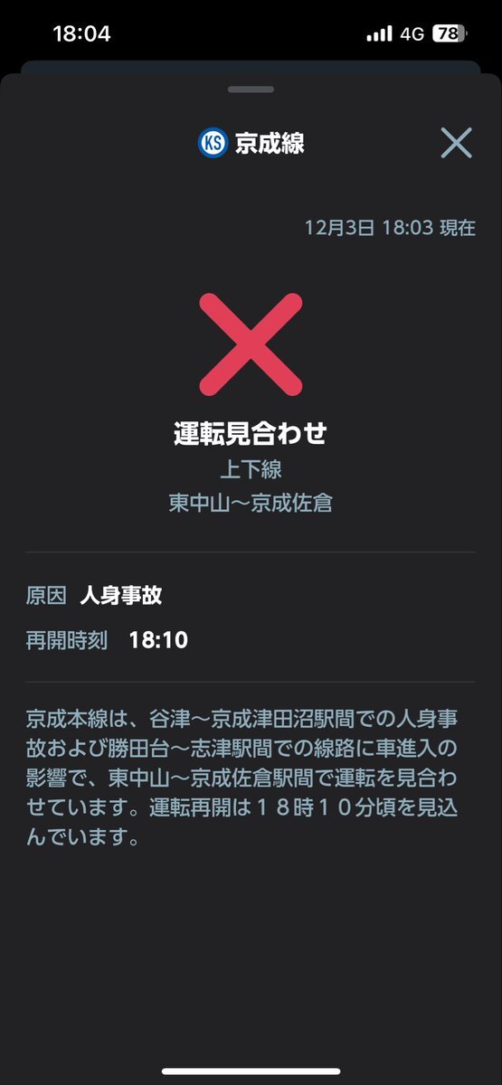 11月30日19時50分現在: 19時12頃、JR神戸線:尼崎駅〜立花駅間で踏切の確認をしたため、JR京都線・JR神戸線・学研都市線・JR東西線・JR宝塚線の列車に遅れや運転取り止めがでています。 #JR西日本 trafficinfo.westjr.co.jp/kinki.html pic.x.com/qlC6pffxQR