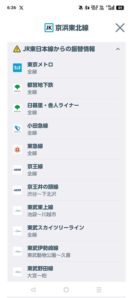 横浜線のポイント故障で京浜東北線も振替乗車中。蒲田駅来たら南行遅延してた。振替乗車見たら横浜線なのに何故か振替先でりんかい線とか東京モノレールとか北総線も振替対象なんだよね。どうやったら横浜線振替乗車でりんかい線・東京モノレール・北総線を使う必要性が? pic.x.com/5mB8Vnz0qa