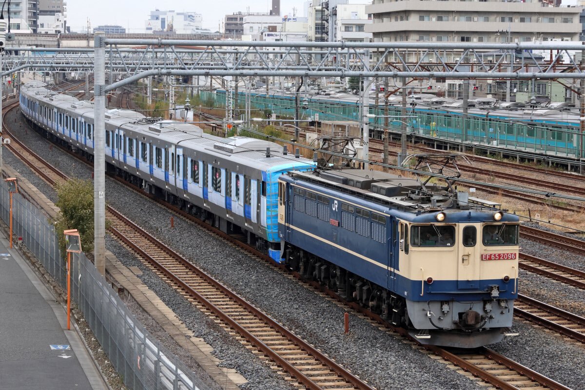 先週のEF65は数々の代走運用で大活躍でしたが、特に目玉は2096号機の活躍だったでしょうか。 火曜日は相鉄13000系、水曜日は八高線HB-E220系、木曜日はりんかい線71−000形、金曜日は東急大井町線9000系と異例の4日連続甲種輸送運用充当となりました。 喉の調子が良くない中 単9473出区点検まで撮影。 pic.x.com/eNl2wXSpqD