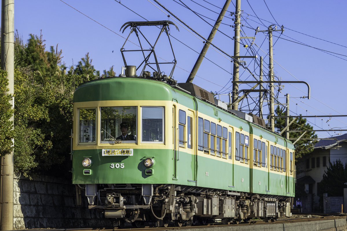 今日のんびり江ノ電は、ハプニング続き 運用入りしていると思っていた305が車庫にいて、がっくり気分で現着して1本通過してから暫く来ないと思ったら、ドア故障の為全線不通 帰ろうと思ったら接近音が、なんと日中は珍しい305の2連がやってきました。慌てて構えて棚ぼたでした #江ノ電 #305 pic.x.com/oq0Abdw5Bv