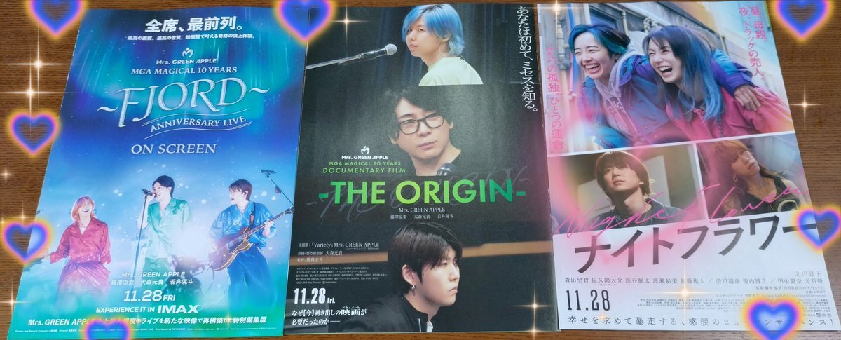 息子とお出掛けして… フライヤーゲットして来た🍏🩷 息子が居てくれたので2枚貰って来た有り難い息子に感謝🙏 同じ公開日なので…🍏🩷 #ナイトフラワー #佐久間大介SnowMan #FJORDONSCREEN #DOCUMENTARYFILMTHEORIGIN #MrsGREENAPPLE pic.x.com/ikk5AL9Qew