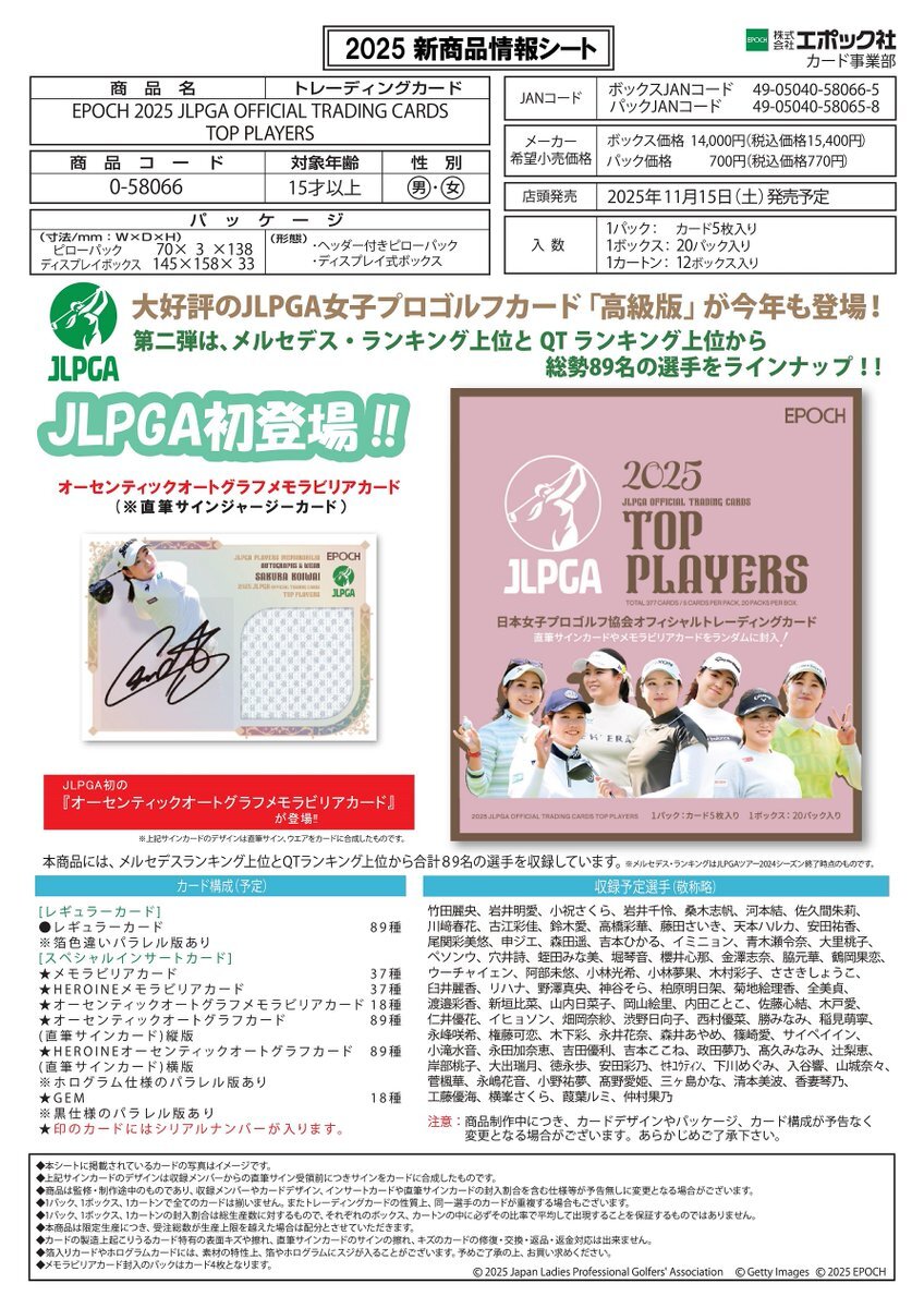 【製品情報】 2025年11月15日 発売予定 ⛳EPOCH 2025 JLPGA OFFICIAL TRADING CARDS TOP PLAYERS https://t.co/kPMzrg2Y9W 大好評のJLPGA女子プロゴルフカード「高級版」が今年も登場! https://t.co/WOPzryO3Yl