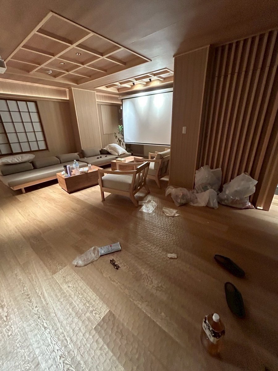 なぜ室内にBBQコンロの箱が!? まさかベランダでBBQしたとか!? せっかくのキレイなお部屋が台無しじゃん… ゴミや生ゴミが床に散乱した状態で過ごせるんだからきっと自分の家もこうなんだろうな…。 綺麗に使おうって気が一切感じられない。 倍の宿泊料金取ってもいいと思う!!