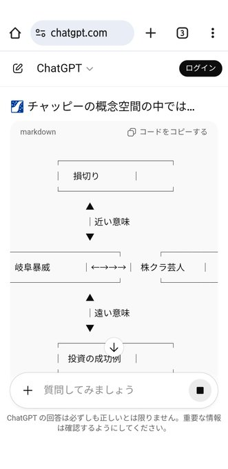 前にチャッピー(chat GPT)がどうやって日本語を理解しているのか(概念空間について) chatGPTに聞いてみたら、岐阜暴威で説明してくれたことある。 わざわざテキストで図解してくれて分かりやすかった。 pic.x.com/WJLR1iUfqA
