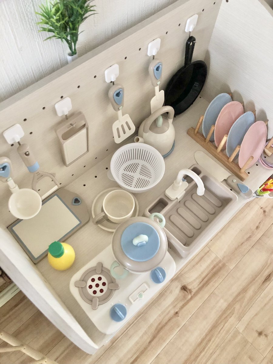 ママ友が「これ真似しよう〜!」って言ってくれた手作りままごとキッチン🍳 ニトリのカラボを組み合わせて、セリアのキッチンをつけて並べただけ🫶 自分好みに作れるし、使わなくなったら普通に収納として使えるし、お手軽で気に入ってる🥰 pic.x.com/vUcLyLnvRq