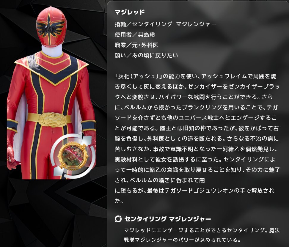 噂を聞いて公式サイトに来たけど、本当だ... ゼンカイザーがゼンカイザーブラックになったのってマジレンジャーリングの「灰化(アッシュ)」の能力だったんだ... #ゴジュウジャー pic.x.com/dEhlxBb6fy