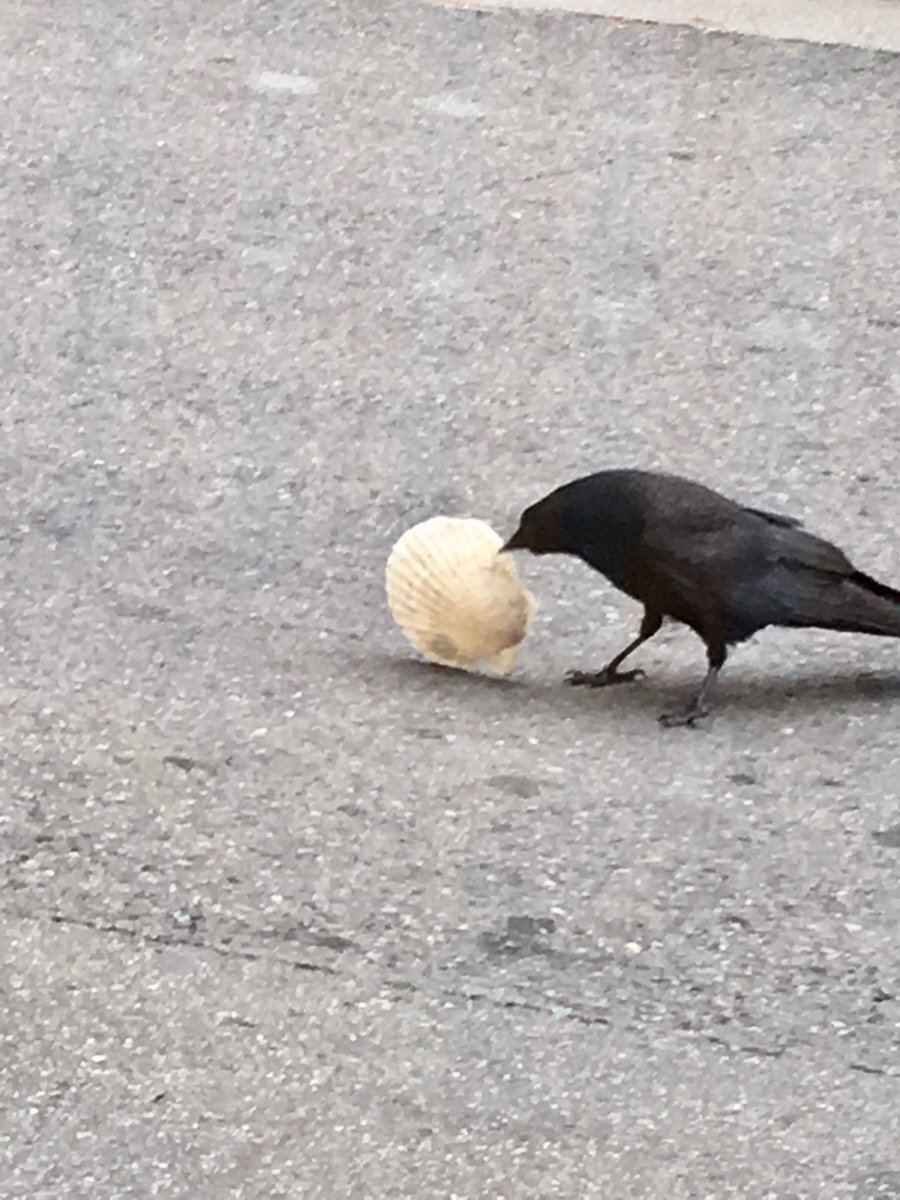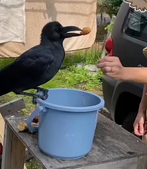 仕込み終わってTwitterみたらなしたや💦 たまげた 貝殻くれたのはこの子じゃないけど、元々カラスとは仲良しだからドーナツ食べてくれなかった動画見て行ってください🐦⬛ x.com/tetsu_tochi/st…
