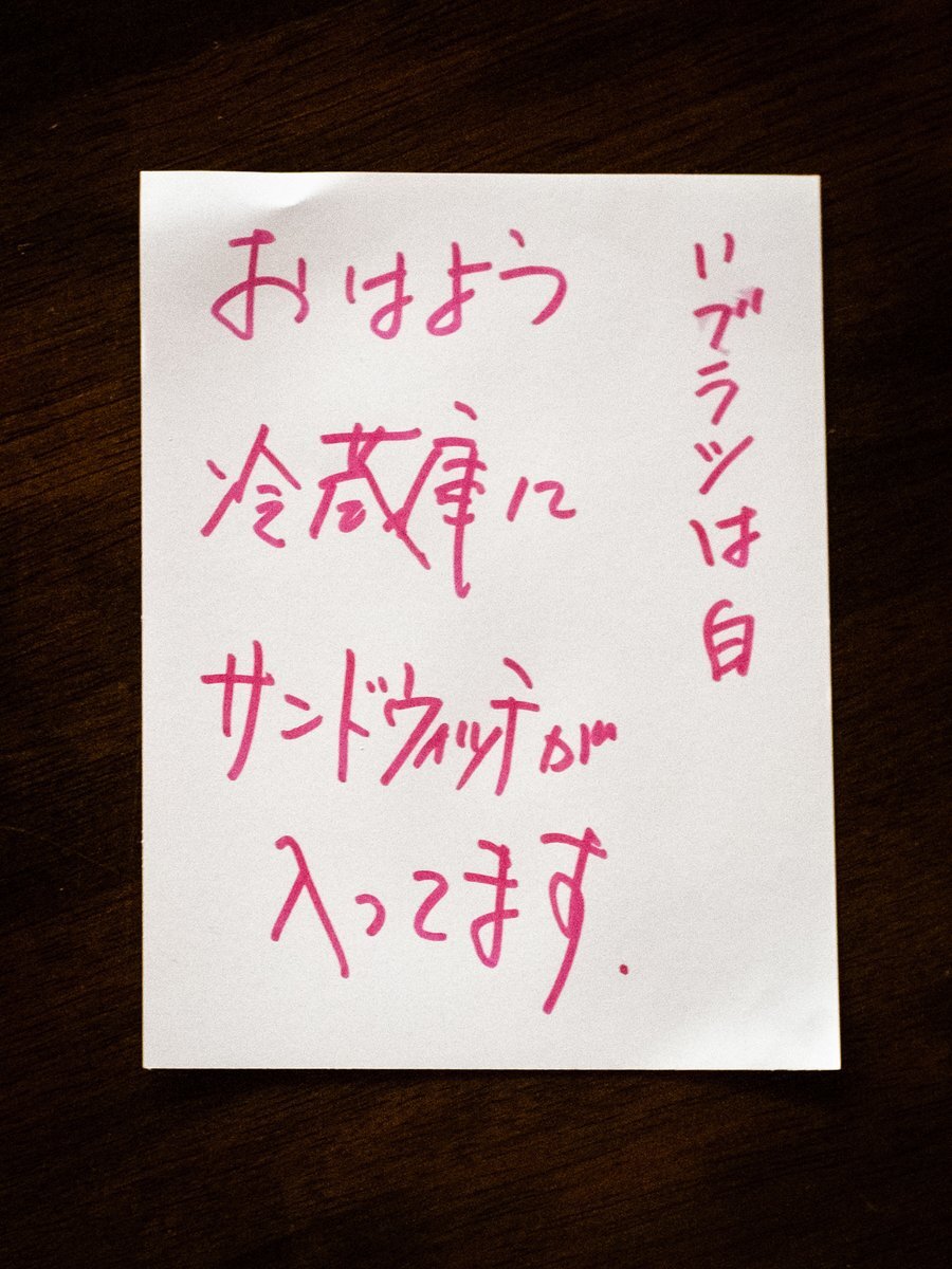 久々の実家。遅寝して起きたら父が彼女みたいな書き置き残してて笑った。二年前に母が倒れて以来、七十の手習いで自炊を続けている親父の手作りサンドイッチ、美味しくてびっくりした。 pic.x.com/xN4lwhclma