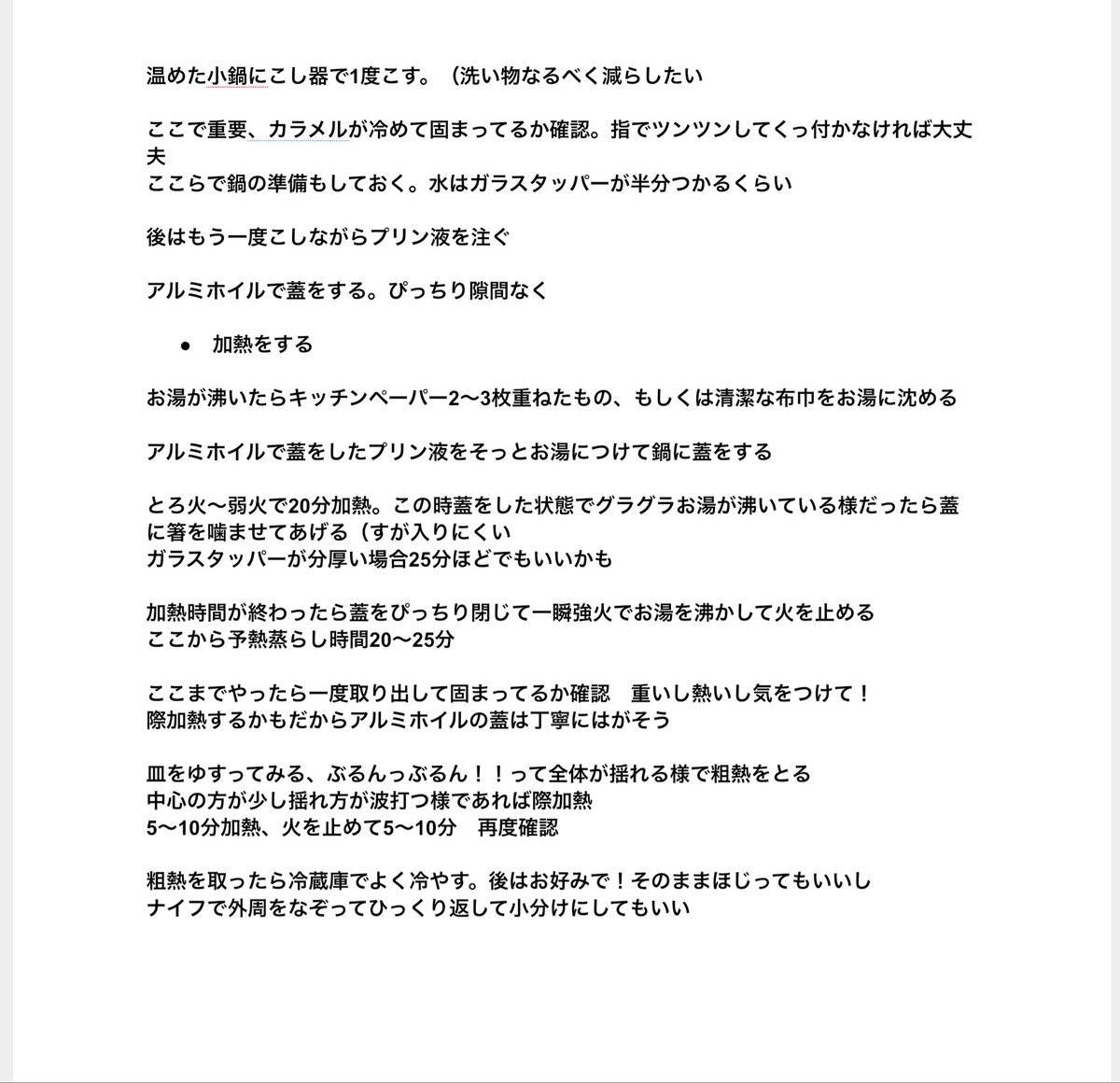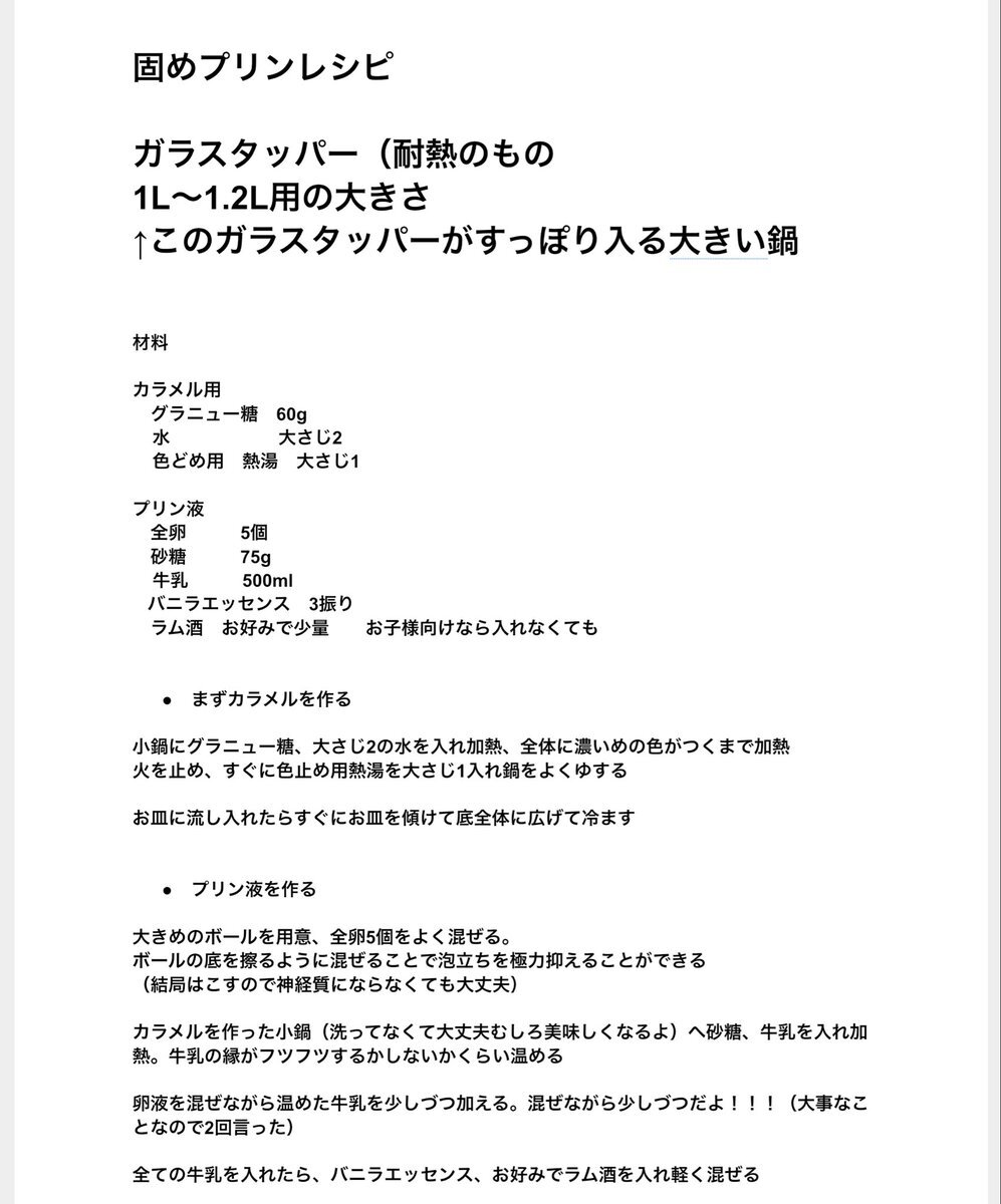 ちゃんとした作り方です! 材料メモだけじゃ困る人もおるよな!?至って一般的なプリンの作り方だよ! ガラスのプリンカップでも作れると思うよ! 加熱は普通に蒸し器の方がいいかもね!時間等は要調節で! …こんなに伸びると思ってなかったよ! ただの編み物垢でお菓子作るの好きな雑多垢だよ! pic.x.com/0uksWl8K27