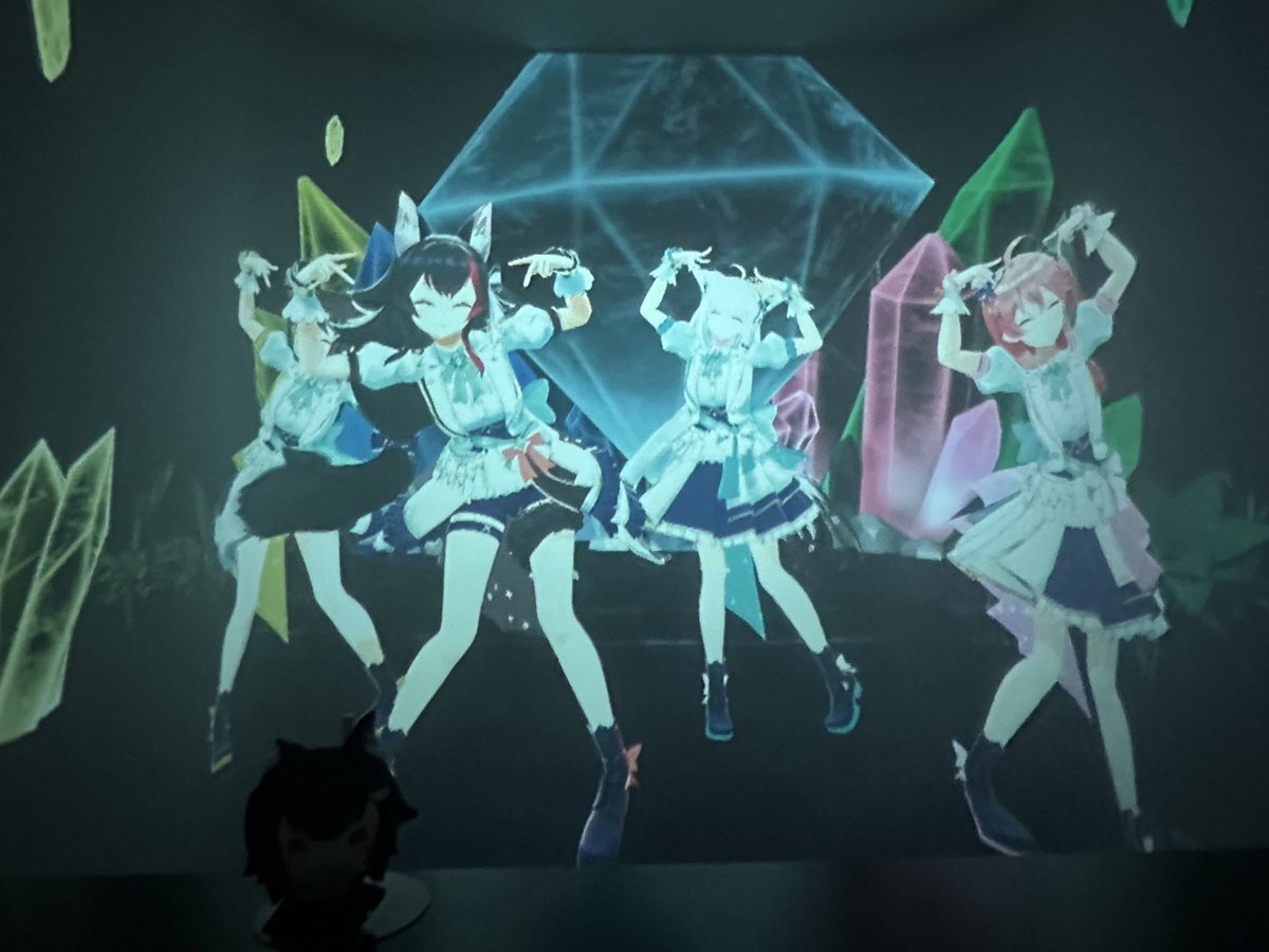 ミオしゃのライブ観てきた! やっぱラウワンのイマーシブプロジェクターいいな〜 場面によっては目の前で歌ってくれてるような臨場感よ 配信で観るのはみるハコまで待ってたけど、現地とはまた違った良さがあるな #大神ミオ #みるハコ pic.x.com/NTcfwQrgPb