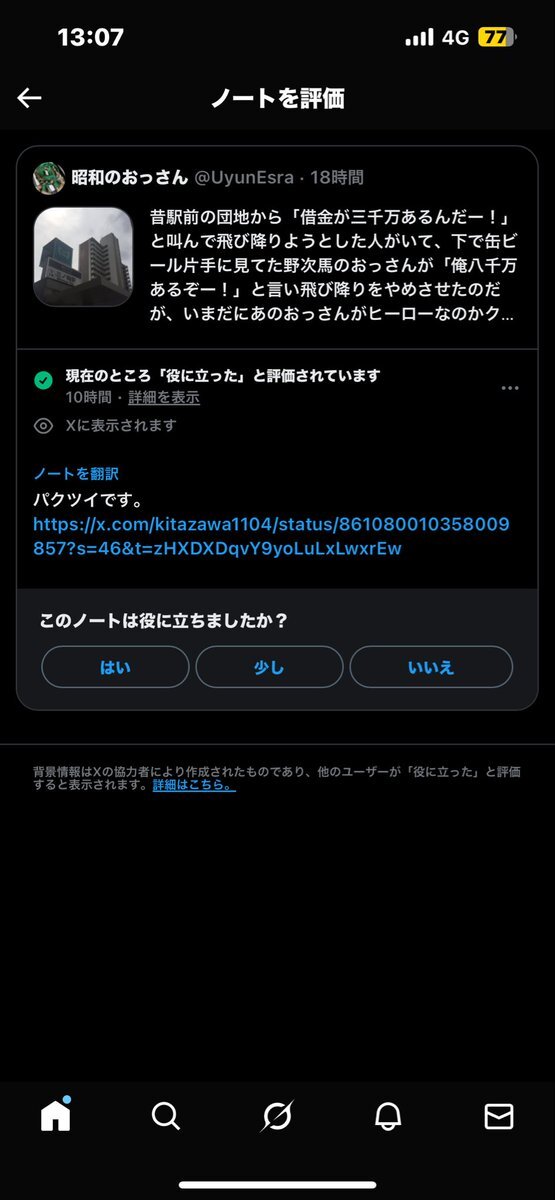 昔駅前の団地から「借金が三千万あるんだー!」と叫んで飛び降りようとした人がいて、下で缶ビール片手に見てた野次馬のおっさんが「俺八千万あるぞー!」と言い飛び降りをやめさせたのだが、いまだにあのおっさんがヒーローなのかクズなのかわからない。 https://t.co/vY0Y75HRRk