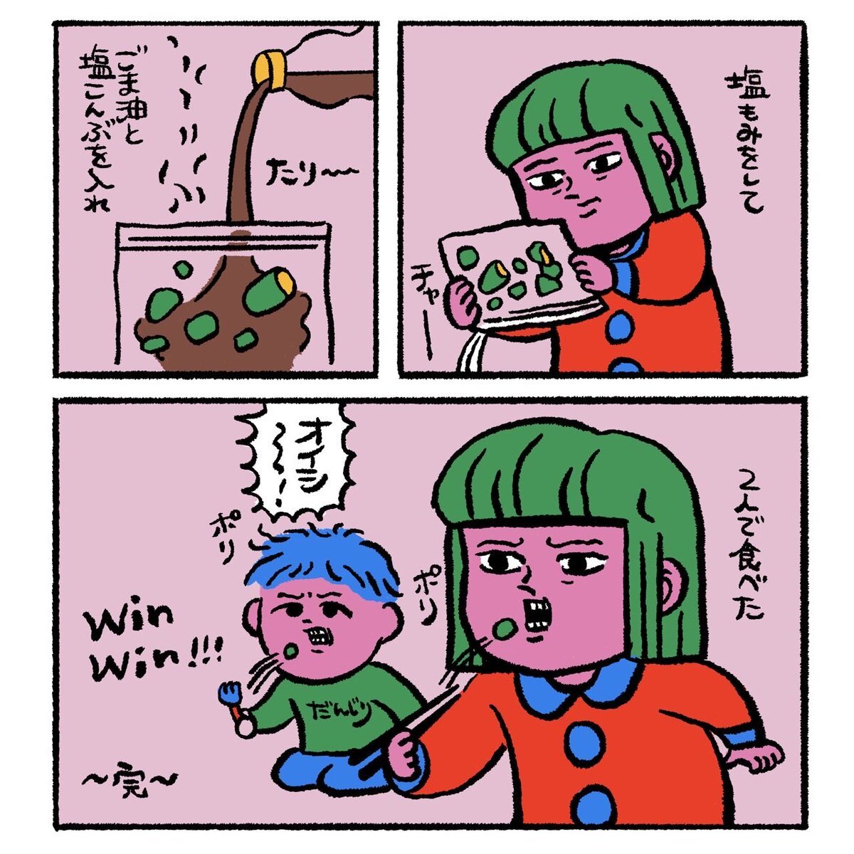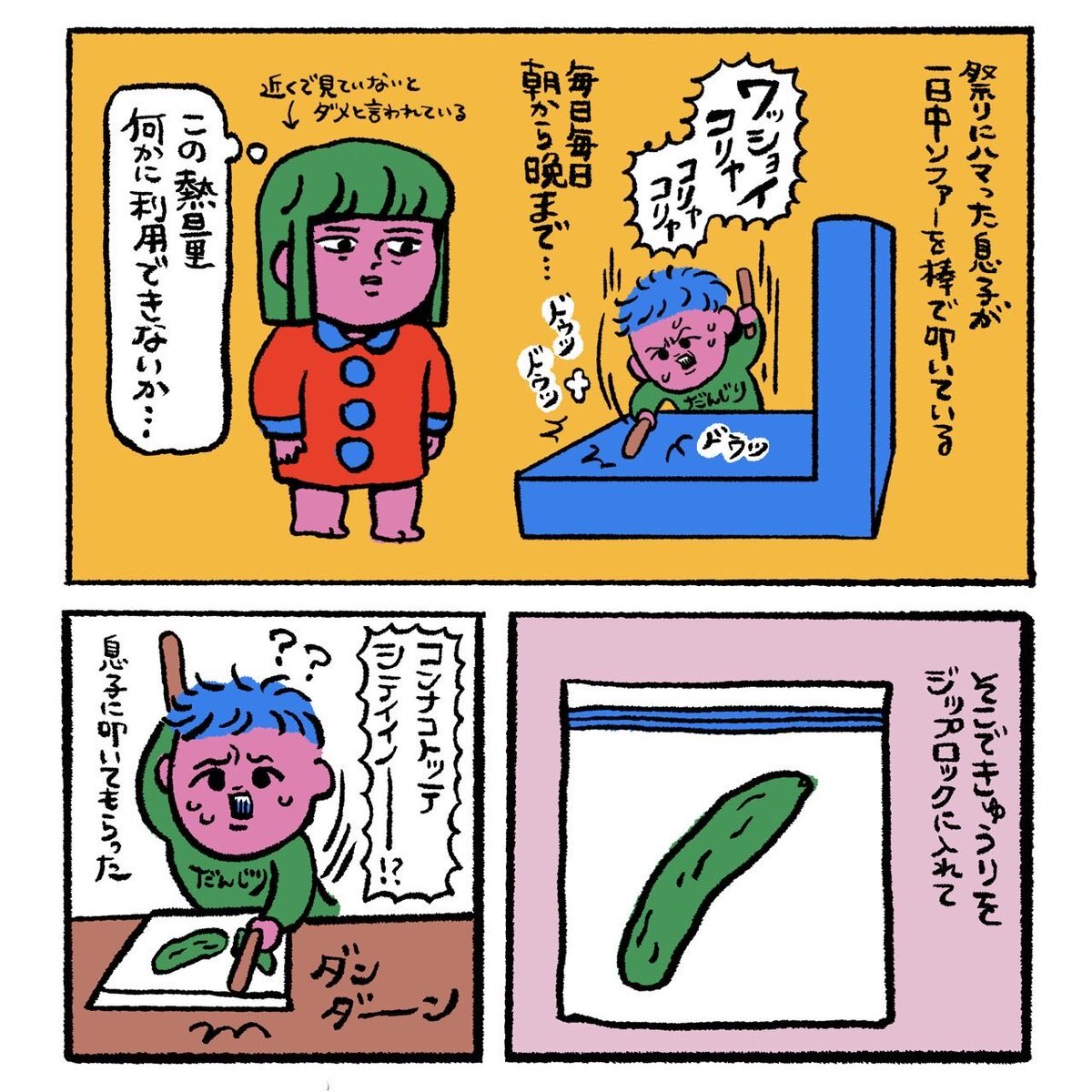 我が家はキュウリと調味料をジップロックに入れて更にタオルで包んだ上から叩いてもろてます😇 リズミカルに力強く、大振りで激しく綿棒でめったうちにしてくれるので高確率で破けてしまううぅー!(3歳4ヶ月) キュウリおいしーーーーーーー!