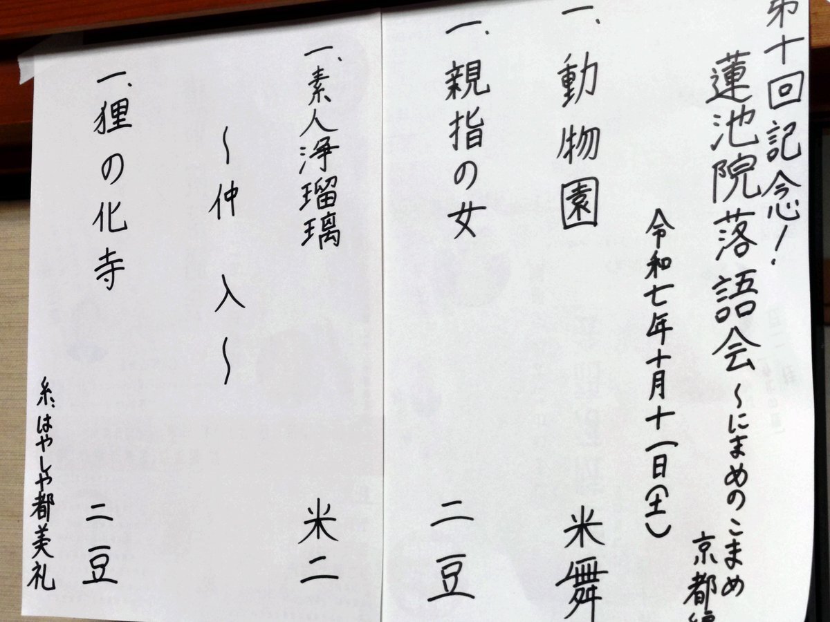 #桂二豆 さんが受付業務も担当されているのは、一人一人に落語を届けたい気持ちの表れでしょうか。頭が下がります。弟子の会に呼ばれてうれしいと語る #桂米二 さん、かっこいいやないですか。『親指の女』タイトルが面白く、貞子との会話めちゃ笑った。『素人浄瑠璃』=『寝床』サゲまで聴きたかった pic.x.com/g22KzcsmIx