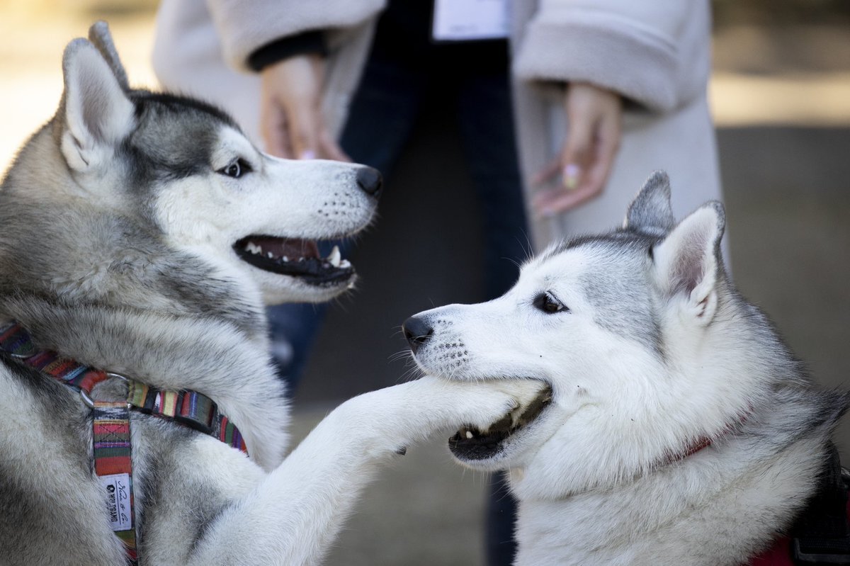 ハハハ、まるで失敗したパウシェイクを演出しているみたい!ハスキーは犬界のコメディアンだね