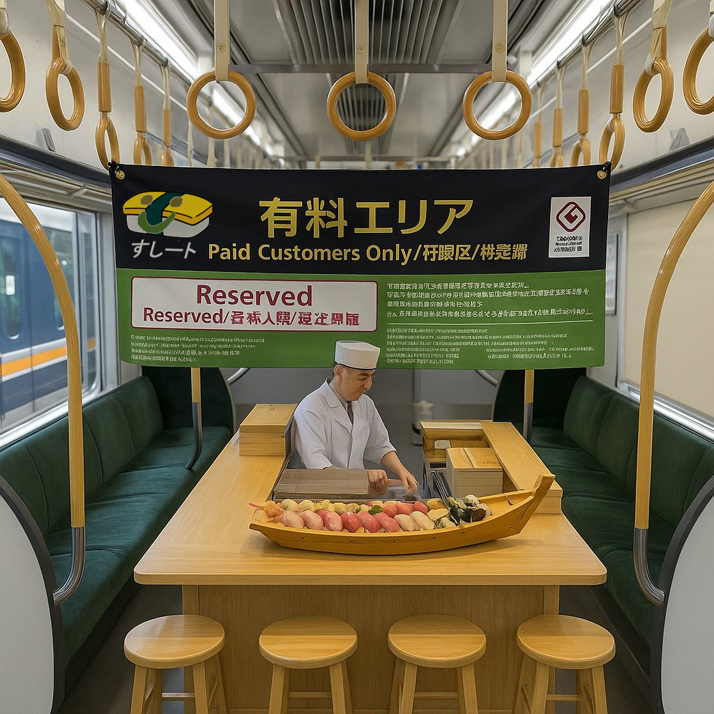 「ロングシートの指定席はダメでしょ!」というクレームの嵐を受けて誕生した、新しい有料着席サービス「すしート」 これにより、「クハシ207」や「クモハシ321」といった新形式が誕生した(などと pic.x.com/voiVllZoyZ