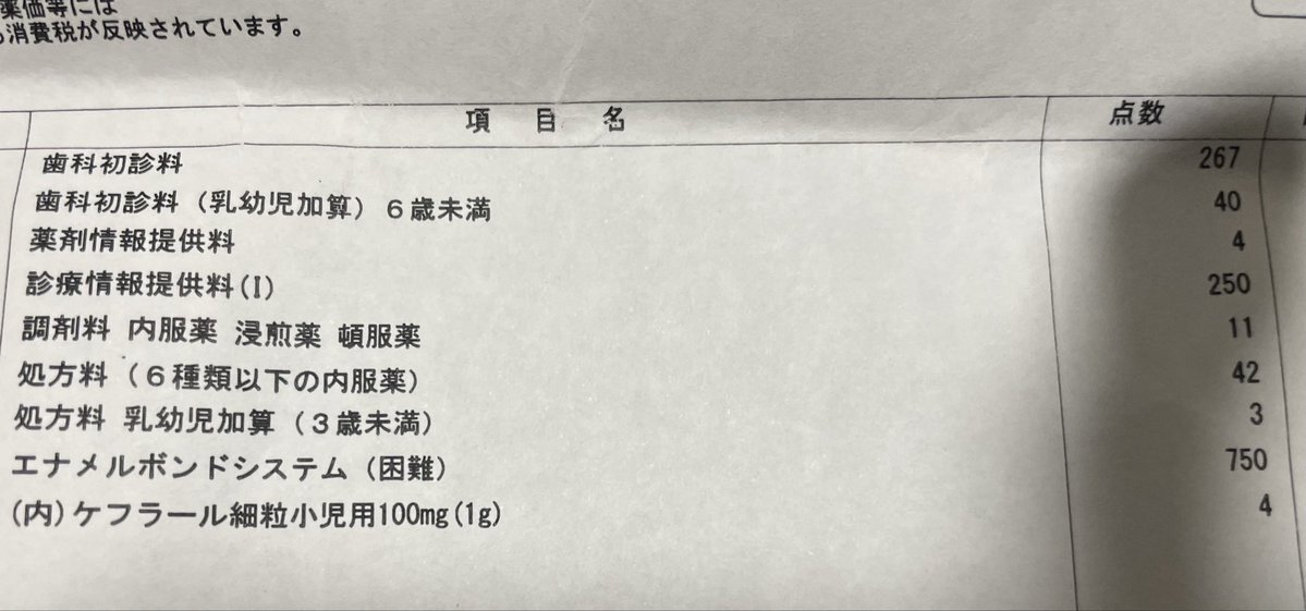 幼児って医療費かからないから診療内容ってあんまり見ないんだけど、ふと今日の歯医者さんの確認したらしてない処置が加算されてた… エナメルボンドシステム、やってないのよ。 どうしよ… pic.x.com/nVLlgpoOvA