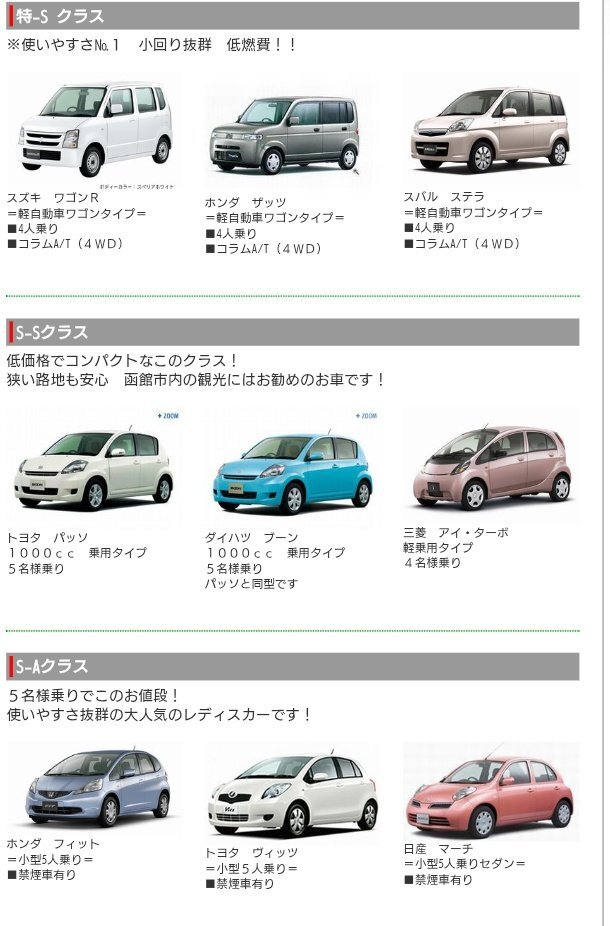 メニューを開く函館にある日本レンタカーのホームページを見たら取り扱い車種が2世代〜3世代前の懐かしい車種ばかり取り扱っているな ホームページも2008年4月から17年間更新がされていないが今でも営業をしているんだろうか? https://t.co/QKGtHjP2zO