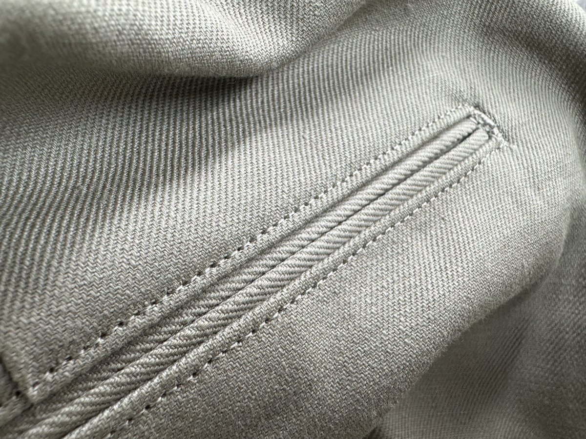 弊社を見学される方は量産品を見て 2.5mmの玉縁ポケットや本縫いの折り伏せの精度を見てかなり驚かれます。 縫製士という仕事に日が当たりますように🙏 pic.x.com/ReOazIgMXd