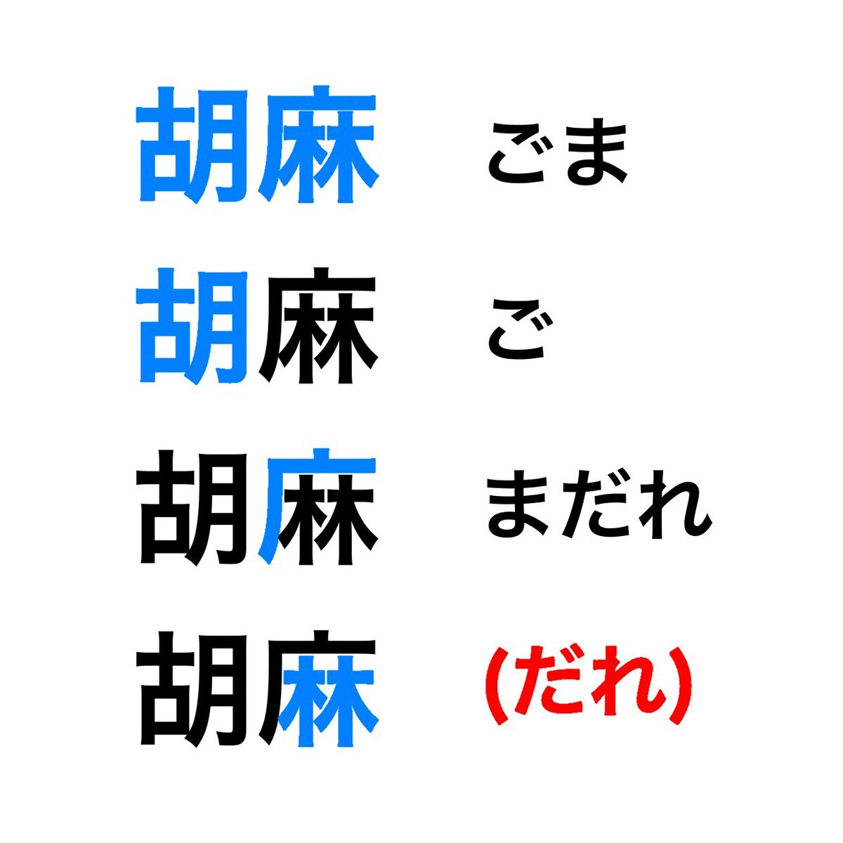 ご+まだれ-だれ=ごま