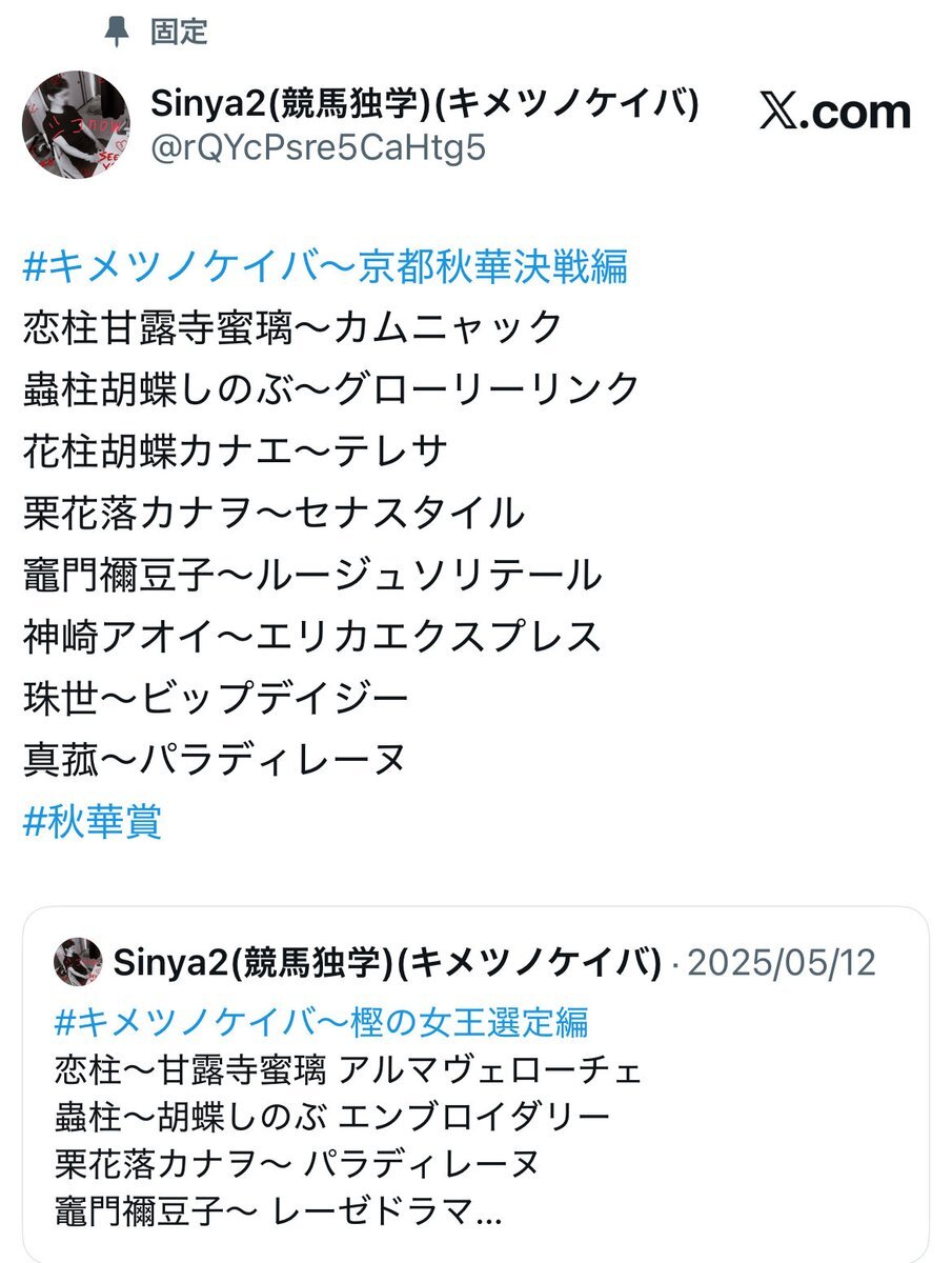 今年はトライアルの負荷が 少なかったのは #紫苑S で上昇幅を想定するなら こちらから選ぶべきだろう… 但し… 出走メンバーレベルは #ローズS より低かったので 自分は素直に能力面からローズS組と 別路線組を評価しているが… #秋華賞 pic.x.com/0i8tuSXqxa x.com/rqycpsre5cahtg…