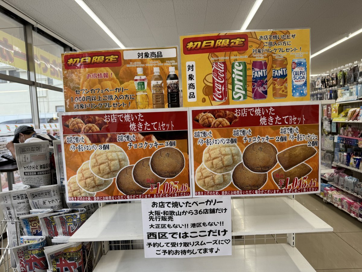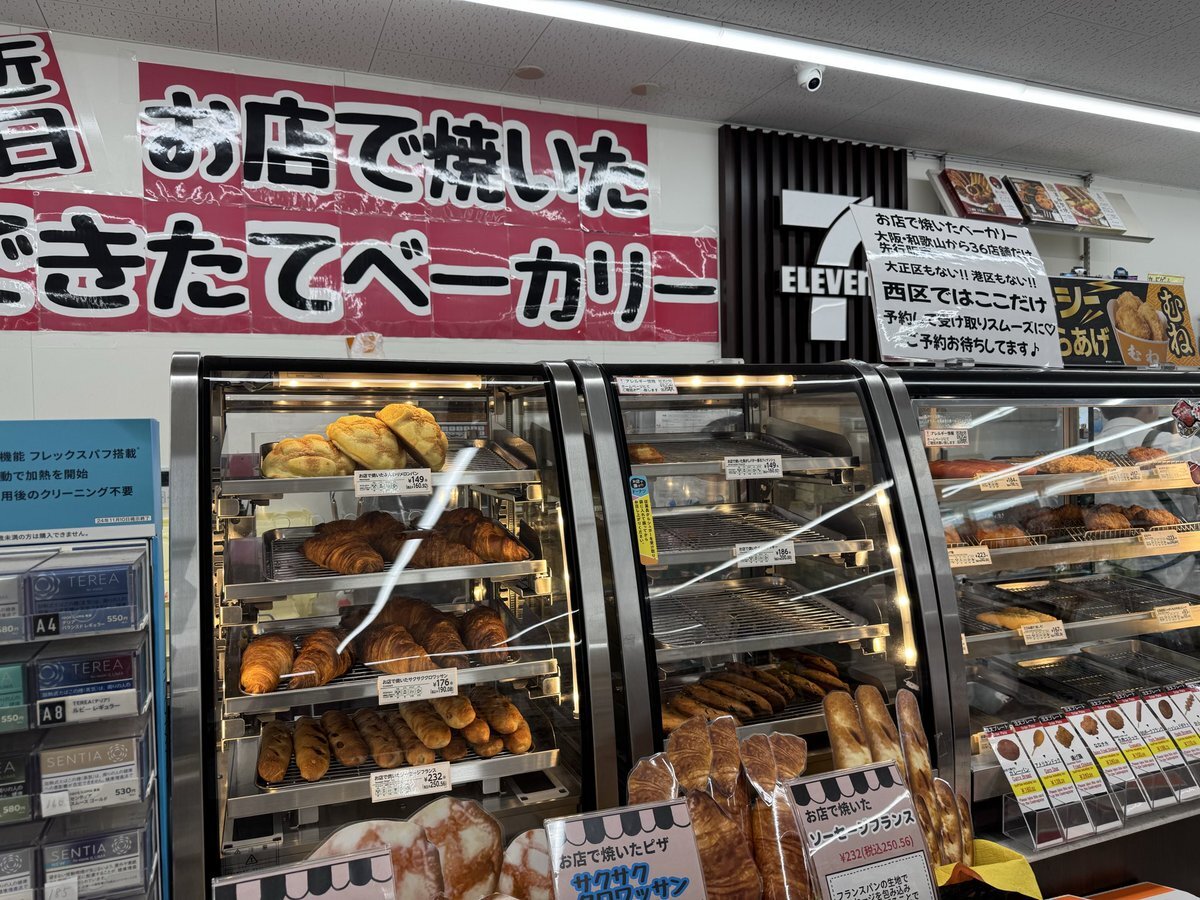 弁天町のお隣、京セラドームすくそばのセブンイレブン 大阪千代崎2丁目店でも食べられます☺️ 万博にもあった焼き立てクッキーもあり、近隣で唯一焼き立てベーカリーがある店舗なのでおすすめです。 pic.x.com/9r6jkhibsf
