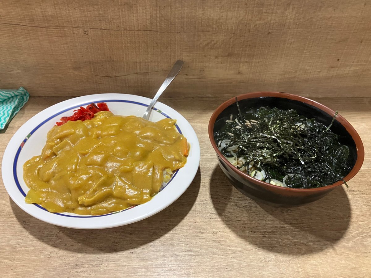 食べて見たかった万代バスセンターのカレーライス🍛 お店が会場から思いの外近かったので、寿司を食べた直後なのに食べてしまいました。(ミニカレーにしました) 噂どおり見た目に反して辛いカレーでしたが美味しかったです😋 そば屋なのにお客さん全員カレーを食べていましたw #あずあずと通信交換 pic.x.com/QwkzsPwaZV