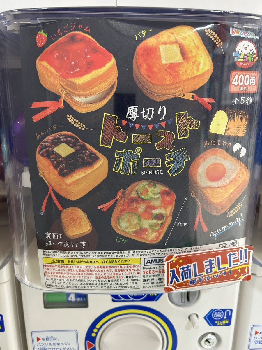 ◓ガチャガチャ入荷情報◓ 🟢厚切りトーストポーチ 💬どれもおいしそう😋ふっくらやわらかトースト🍞裏面もちゃんと焼き色! 🍞入荷しました🍴 万代高崎 カプセルトイ ガチャガチャ AMUFUN アミュポン AMUSE pic.x.com/d5fXWOK3XS