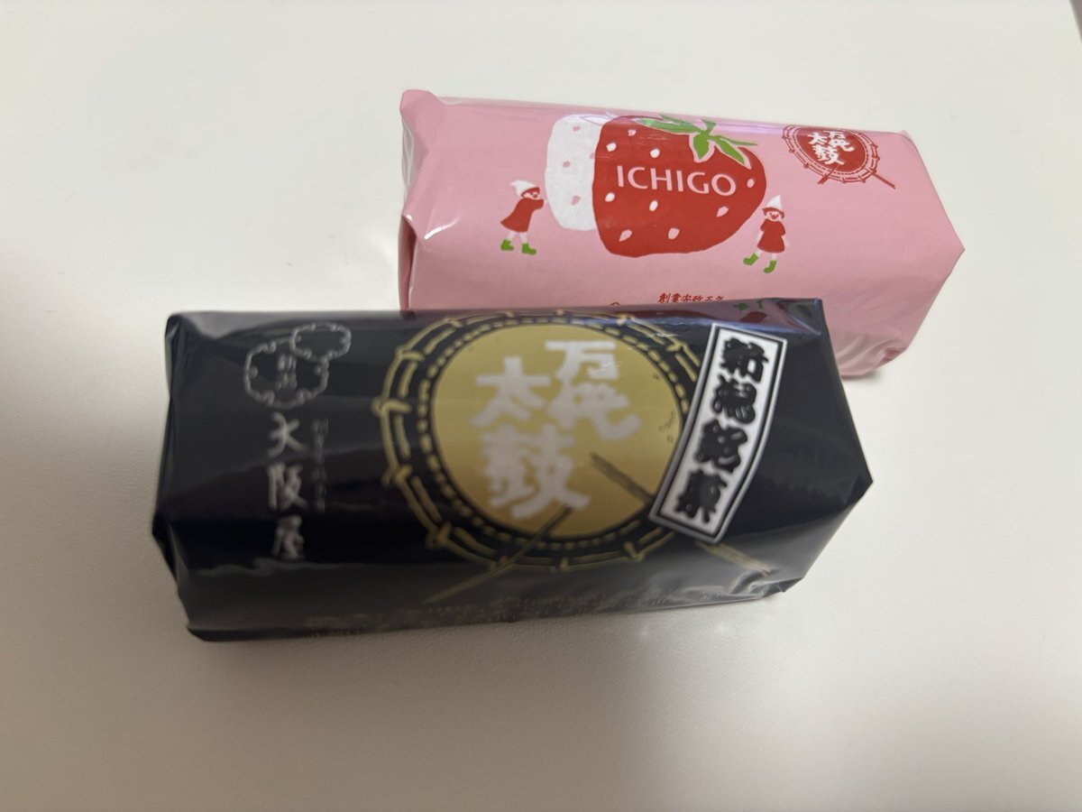 私の原点にして頂点の新潟土産こと 万代太鼓さん。 これが結局一番美味しいのよ。。。 おはよう。 pic.x.com/CXxGgzNIHA