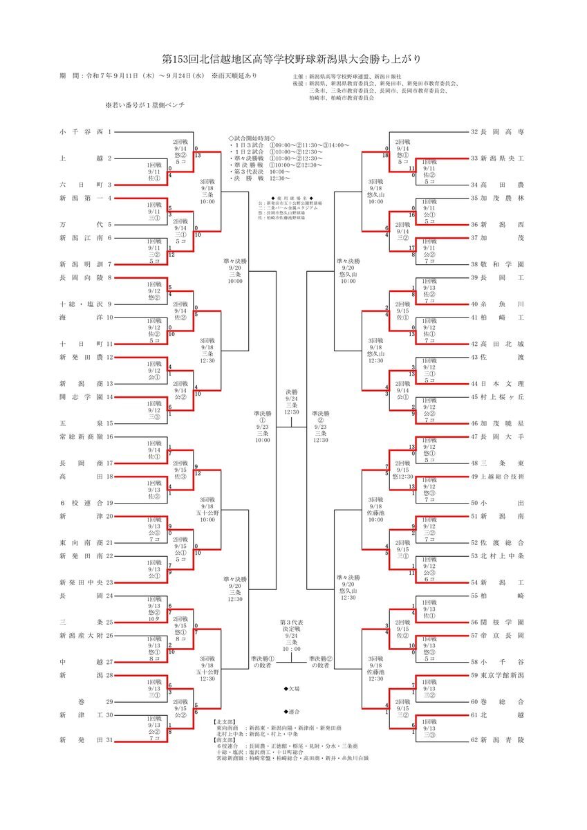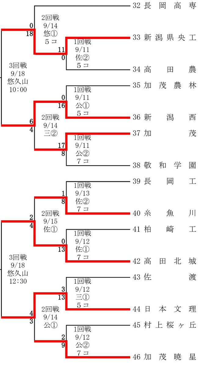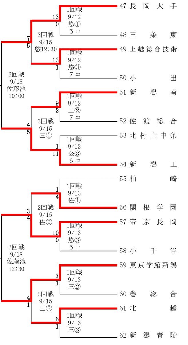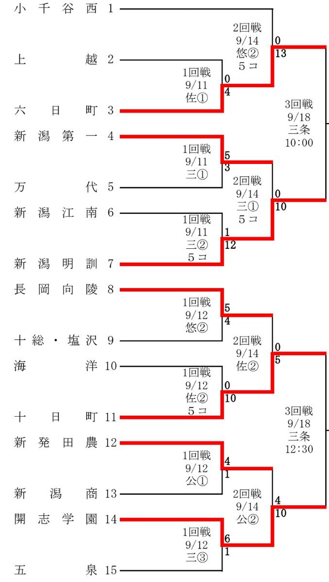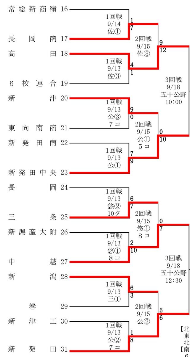 1回戦 長岡商7-1柏崎常磐柏崎総合高田商新井 2回戦 六日町13-0小千谷西(5) 新潟明訓10-0新潟第一(5) 新潟県央工18-0長岡高専(5) 新潟西6-4加茂 日本文理4-3加茂暁星 十日町5-0長岡向陵 開志学園7-4新発田農 x.com/bxbxbb777/stat…