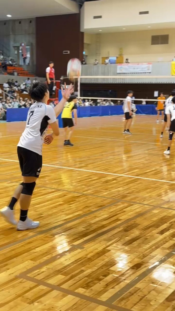 荒井サーブネット 菅原プッシュ ライトから黒澤クロス17-20 明治リリーフサーバー19松木太一(上越総合技術)OH2イン レフト山田羽純スパイクアウト ライトから菅原クロス レフトから佐々木クロスはアウト ブロード山田美雄クロス 黒澤サービスエース ラリーラストはレフトから佐々木21-22