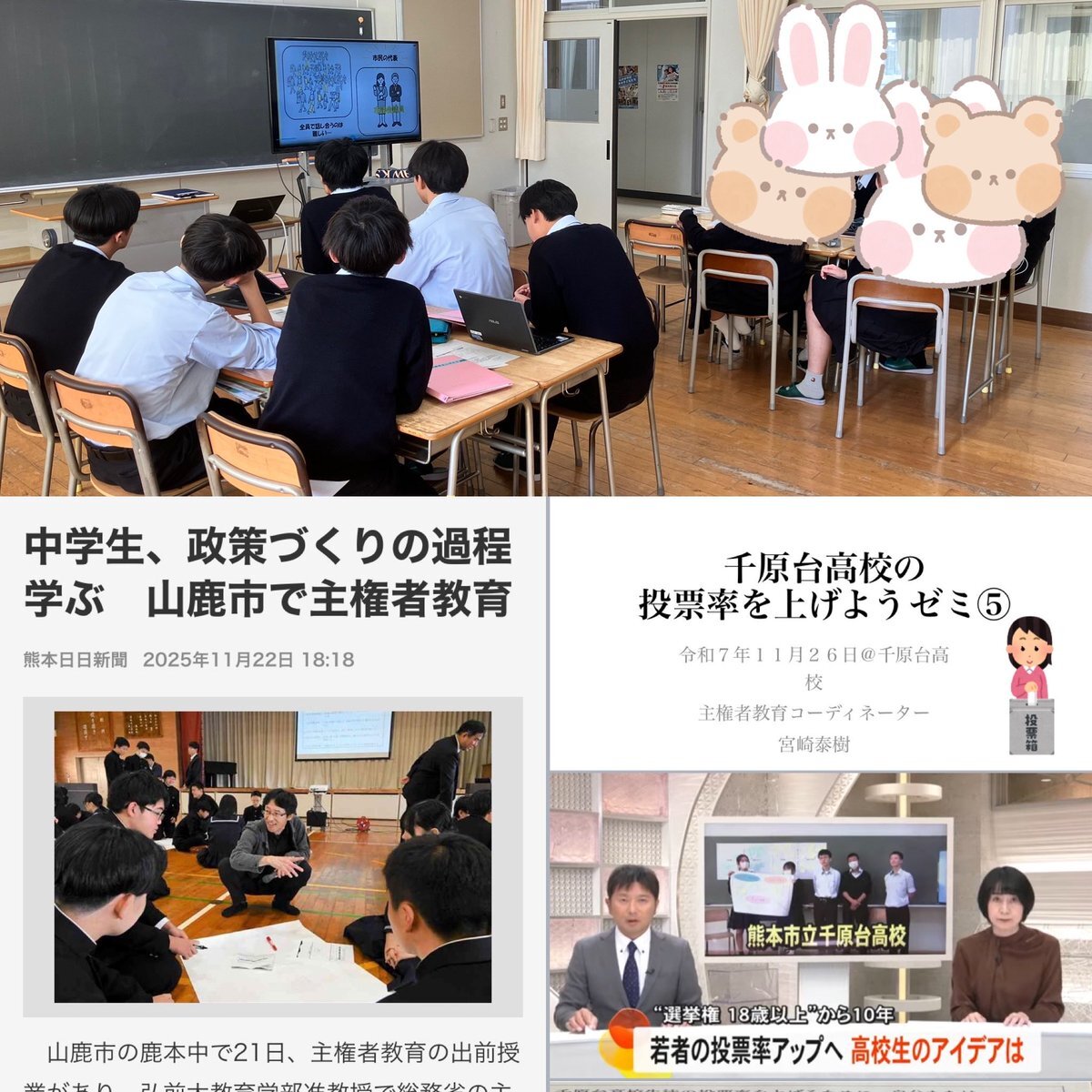 千原台高校「投票率を上げたいゼミ」は12月3日に開催される熊本市議会傍聴ツアーを前に事前学習会。投票率アップに向けた取り組みの進捗状況を市議会のみなさんに発表します!先日の山鹿市議会の主権者教育も話題に。投票率向上の先に住民の声がより反映される行政を目指して…。生徒の奮闘は続きます pic.x.com/mFDNBjA0AM