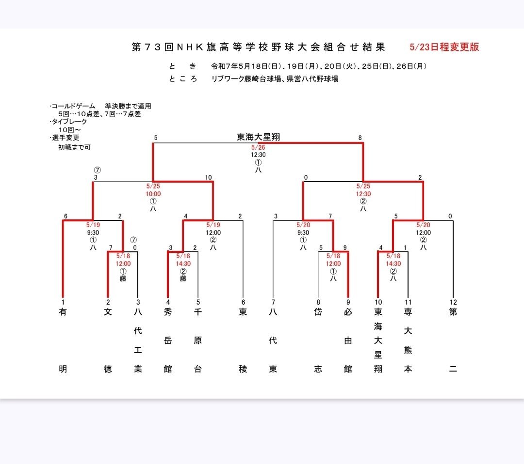 2025年熊本県高校野球結果まとめ③ ~NHK旗~ 熊本市予選 代表校:東海大星翔、千原台、文徳、第二、必由館、東稜 城北地区予選 代表校:有明、岱志、専大熊本 城南地区予選 代表校:八代東、秀岳館、八代工業 本大会 優勝:東海大星翔 41年ぶり5回目 準優勝:秀岳館 ベスト4:有明、必由館 pic.x.com/fwd0x3YksQ