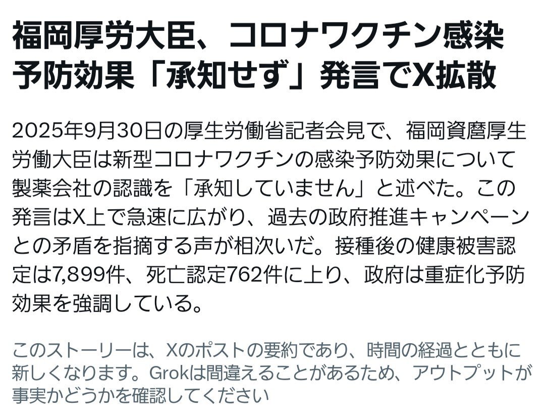 ⬆️2025年9月30日。 日本政府、「製薬会社が #コロナワクチン の感染予防効果を認めているかどうかを把握せずに」バカみたいに日本国民にワクチンを射たせていた。 さすがワクチン接種率10%の厚生労働省。 x.com/JINKOUZOUKA_jp…