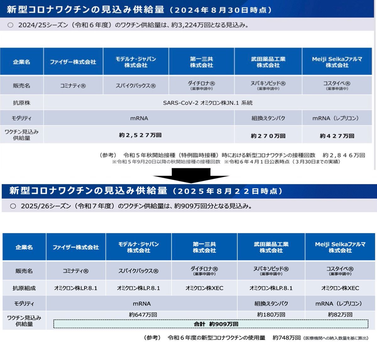 返信先:@honninnoakaunto昨年度、748万回接種 / 3,224万回分の在庫 国民接種率約6% 今日からの今年度、909万回分の在庫 国民接種率は更に下落しそう レプリコンも少ない確保量 厚労省自体が、もう期待してないんちゃうの?と勘ぐってしまいます😅 pic.x.com/2CXVUDjdEl