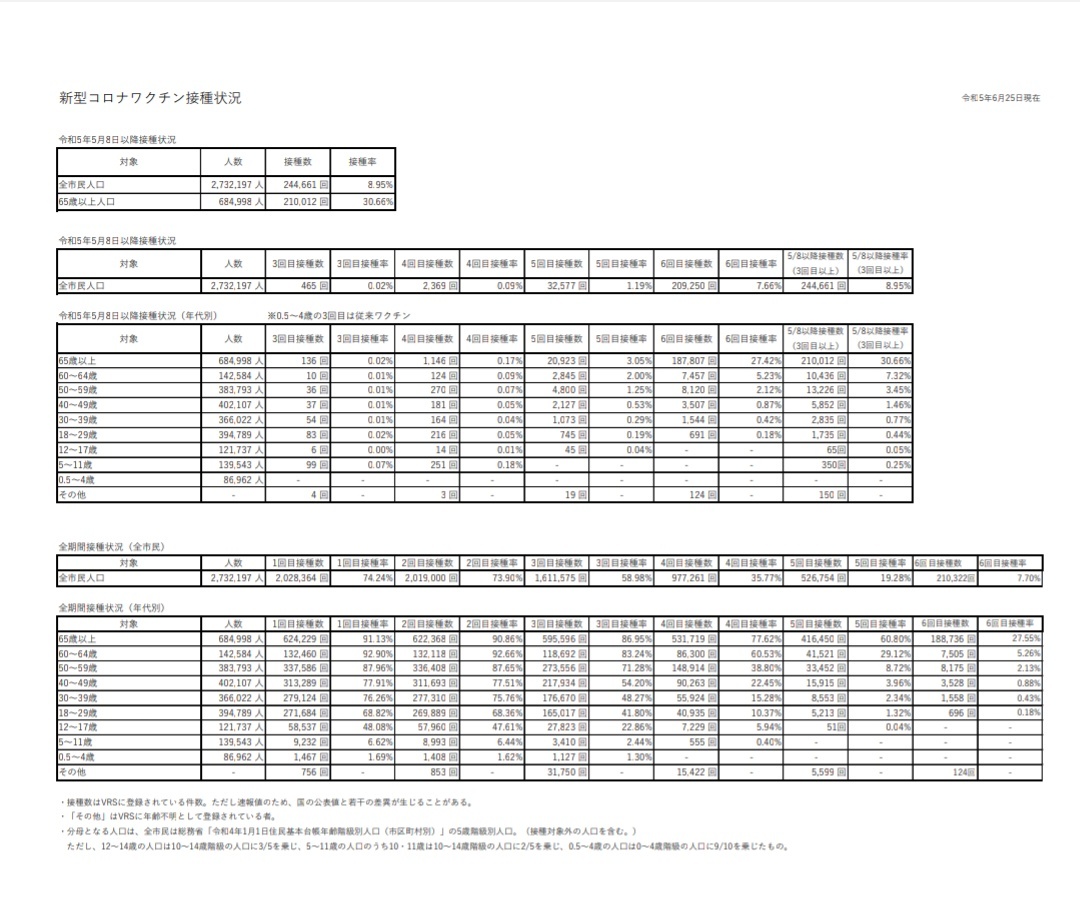 厚労省で似たようなデータが見つからず、大阪市でいいのがあったので規模が小さくて恐縮だが、全期間接種状況見ていただくと、高齢者(65歳以上)で6回目接種回数が188736回、接種率27.55%なのよな。高齢者の多いサンプルなら死亡は多いかもね。なので、これだけでワクチンが原因とはいえない pic.x.com/jSiDybvPQ5 x.com/ClareCraigPath…