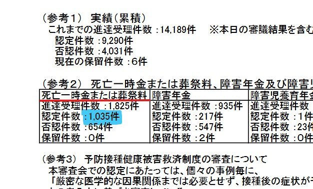返信先:@JINKOUZOUKA_jp①ワクチン感染予防効果のエビデンス mhlw.go.jp/content/109000… ②新規陽性者数等及びワクチン接種率 mhlw.go.jp/content/109000… ③コロナウイルス感染症予防接種健康被害 mhlw.go.jp/content/109000… ①95%の予防効果を謳ったが ②ワクチン接種で感染拡大 ③ワクチン接種後の死者1,035人 厚労省の資料 pic.x.com/cVGKjmAPUU