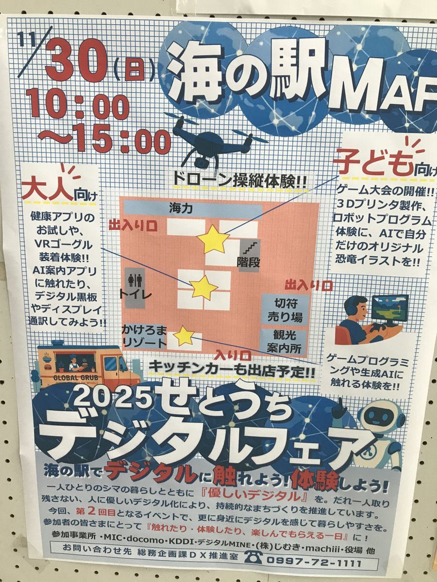 せとうち海の駅(古仁屋)で ★ドローン操作体験★VRゴーグル装着体験★3Dプリンタ製作★ゲームプログラミング などができるらしい!! 11/30(日)10:00~15:00 pic.x.com/eu0K7uIzZL