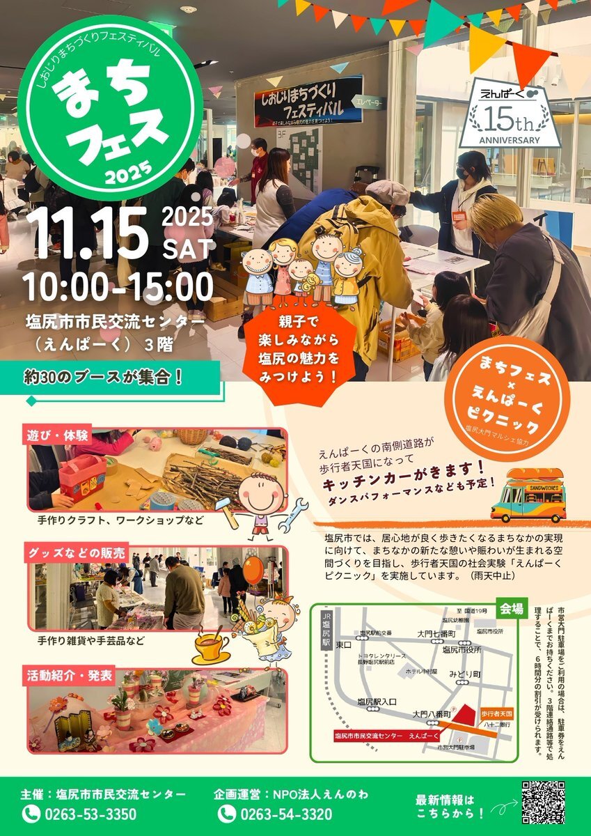 【しおじりまちづくりフェスティバル2025】を開催! 本市をはじめ、県内各地で活動する団体が活動発表や展示、体験、販売などを通じて地域の元気を届けます! えんぱーくピクニックも同日開催! ぜひご家族やお友だちと一緒にご参加ください★ 詳細はこちら🔽 city.shiojiri.lg.jp/soshiki/37/568…