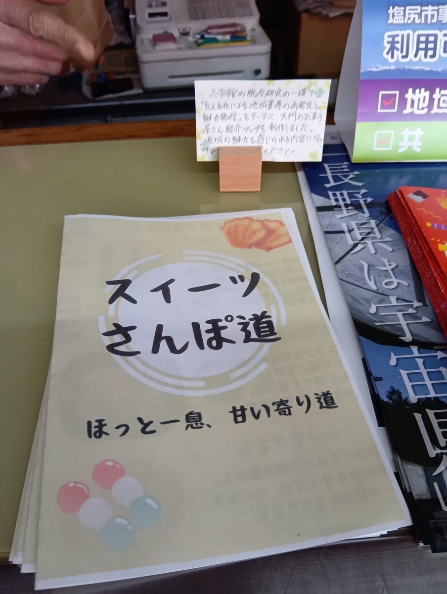 塩尻志学館高校の生徒さんがスイーツさんぽ道というリーフレットを作って配布されていたので、行ったことがないウィングロード裏のたいやきやさんに行きましたが、お休みでした。独自視点のアピールがいいですね。ただ地図がかなり大雑把だったり間違っているので改訂を望みます。 pic.x.com/hnaAyrUpZ4