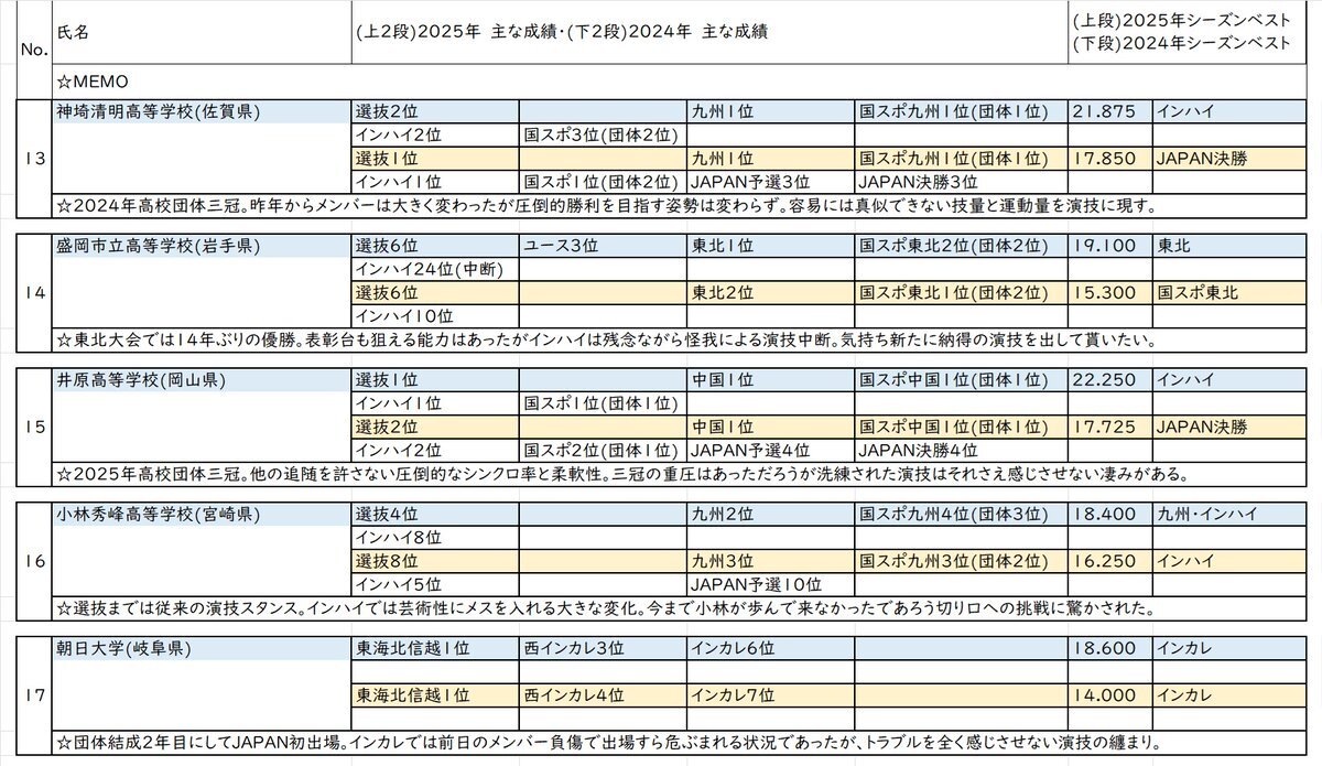 全日本選手権・JAPAN2025 個人的資料 団体④ 神埼清明高校 盛岡市立高校 井原高校 小林秀峰高校 朝日大学 #男子新体操 #ジャパン2025 pic.x.com/P0AxuPtT3w