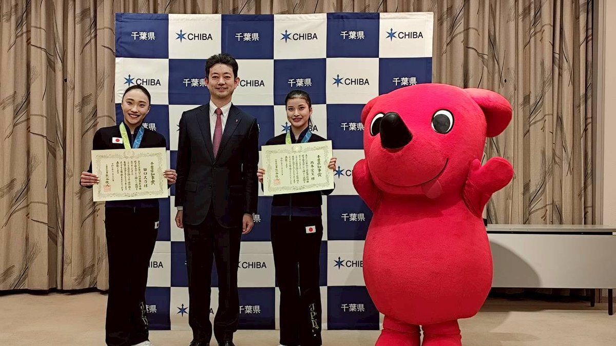 おはようございます。8月の世界新体操選手権大会で見事、日本初の団体総合優勝を成し遂げた田口久乃選手(千葉市出身)、西本愛実選手(昭和学院高校3年)への知事賞表彰を昨日実施。 その活躍は県民に大きな勇気と希望を届けるものであり、その栄誉を称えるため知事賞を贈らせて頂きました。 pic.x.com/XJFUcYpnHL