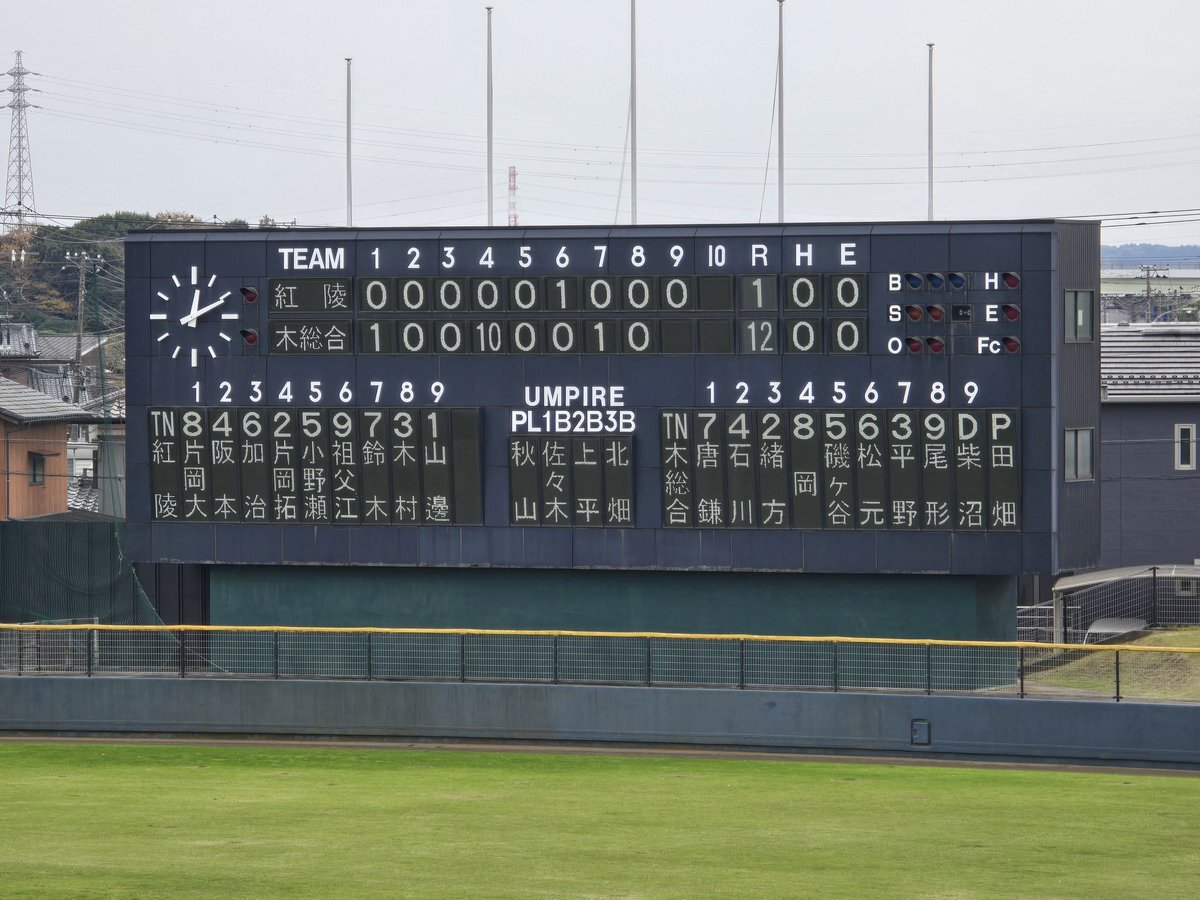 令和7年度南部大会 決勝 袖ケ浦市営球場 試合終了 拓大紅陵1 対 12木更津総合 木更津総合 優勝おめでとうございます🥇 拓大紅陵 準優勝🥈おめでとうございます。 両校、関係者の皆様、おつかれさまでした。そして、ありがとうございました。 木更津総合の皆様、来春を楽しみにしています。 pic.x.com/LNSrwF16ZB